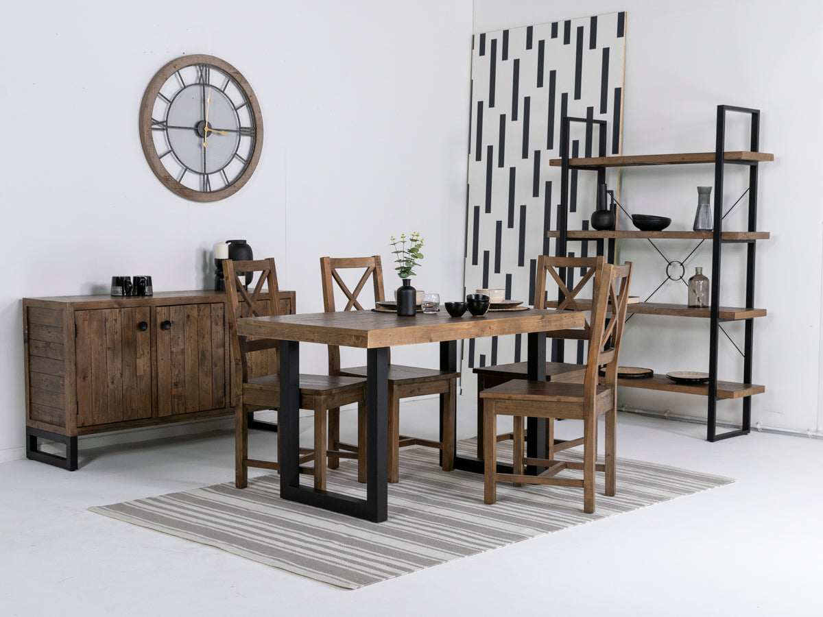 Transformez votre salle à manger grâce au design rustique moderne de cet ensemble. Que ce soit pour un dîner en famille ou une réception plus sophistiquée, la table à manger Brooklyn de 135 cm à plateau fixe et les chaises Brooklyn à dossier croisé affirment un style audacieux grâce à leur design soigné.