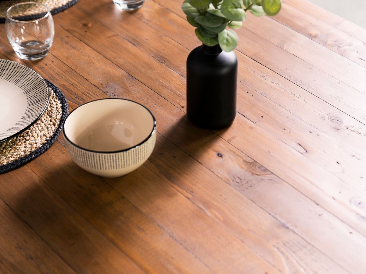 Fabriquée en bois massif recyclé authentique, la table de salle à manger Brooklyn met en valeur les riches textures et le caractère unique de son matériau d'origine. Ses pieds croisés en métal lui confèrent une touche architecturale moderne, alliant stabilité et esthétique. Avec ses 160 cm de hauteur, cette table offre une grande polyvalence, idéale pour les repas intimes comme pour les repas du quotidien. L'alliance du grain brut du bois et des élégants détails métalliques en fait une pièce maîtresse qui s'intègre harmonieusement à différents styles d'intérieur.