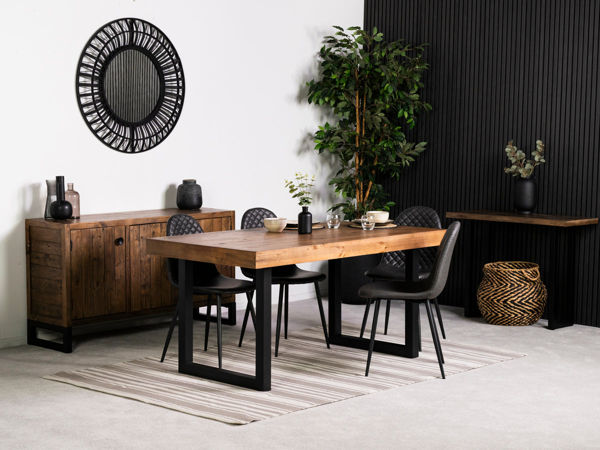 La table de salle à manger Brooklyn de 160 cm à plateau fixe est fabriquée en bois massif recyclé, ce qui confère à chaque pièce un caractère unique et une beauté naturelle. Sa structure en métal noir offre un contraste saisissant et apporte une touche industrielle et moderne qui s'intègre aussi bien dans les intérieurs classiques que contemporains. Grâce à son plateau fixe, cette table offre une stabilité optimale, la rendant idéale pour les repas en famille, les réceptions et les repas du quotidien.