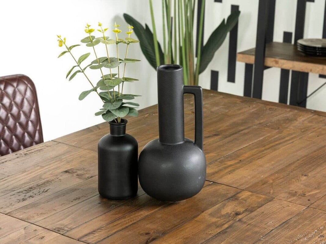 Voici un ensemble de salle à manger remarquable qui harmonise sans effort le charme rustique et l'élégance intemporelle : la table de salle à manger extensible Brooklyn à pieds croisés (140 cm - 180 cm) associée à nos chaises de salle à manger noires sophistiquées Bogart.