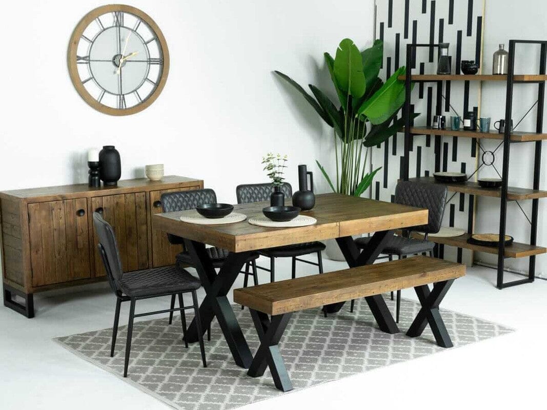 Découvrez la table de salle à manger extensible Brooklyn à piètement croisé (140 cm - 180 cm) : une pièce maîtresse remarquable qui allie avec élégance rustique et design contemporain. Fabriquée en bois massif recyclé authentique, chaque pièce possède un caractère unique et s’intègre naturellement à la collection Brooklyn.