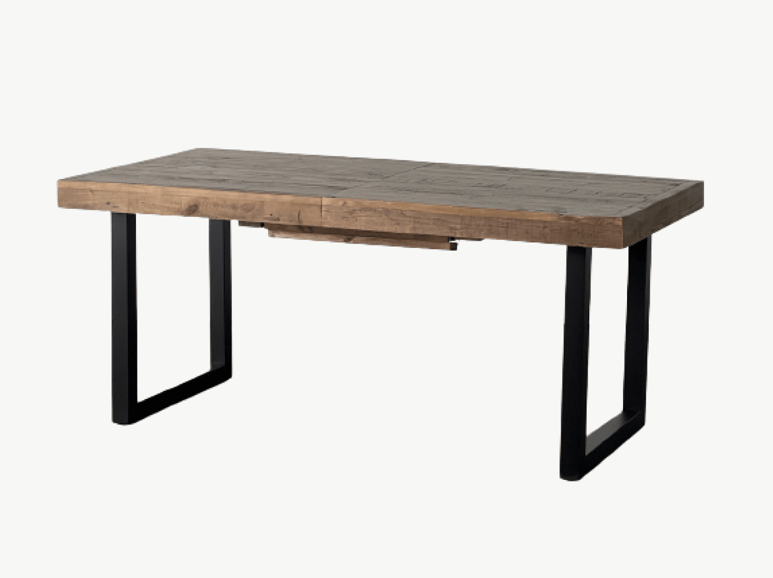 Découvrez la table de salle à manger extensible Brooklyn (180 cm - 240 cm), une pièce maîtresse qui allie avec élégance rustique et design contemporain. Fabriquée en bois massif recyclé authentique, chaque table possède un caractère unique tout en s'intégrant parfaitement à la collection Brooklyn.