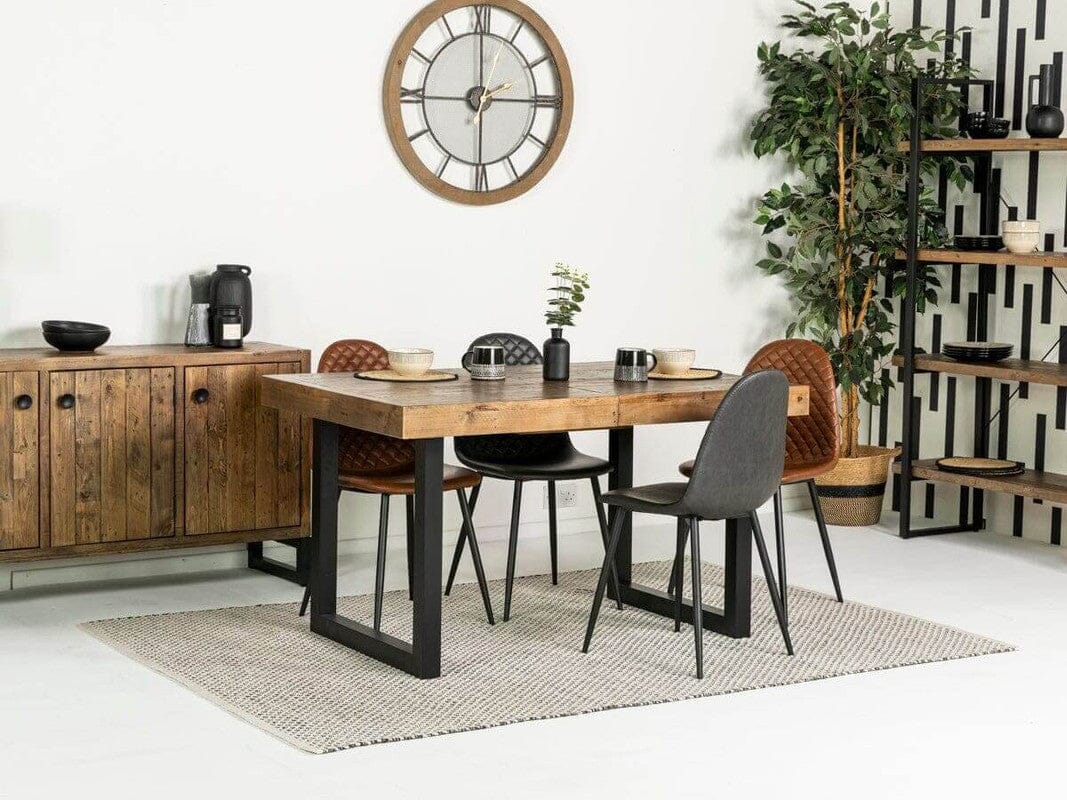 Découvrez la table de salle à manger extensible Brooklyn (180 cm - 240 cm) et les chaises de salle à manger grises Dallas : un ensemble captivant qui allie avec élégance le charme rustique au design contemporain. Fabriquées en bois massif recyclé, chaque pièce possède un caractère unique et s’intègre harmonieusement à la collection Brooklyn.