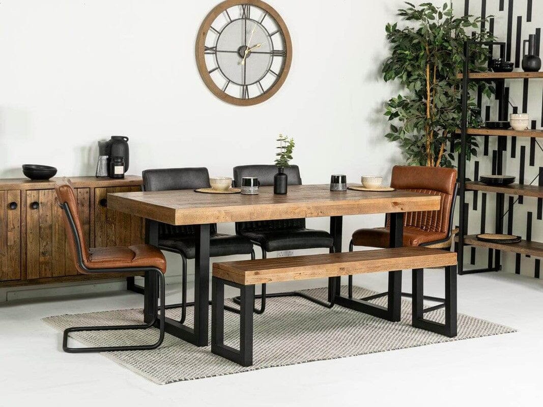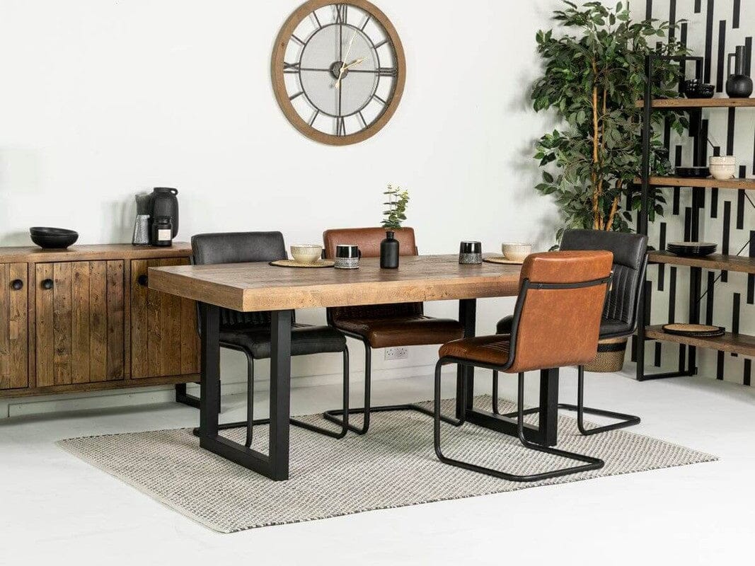 Alliant polyvalence et style avec élégance, la table de salle à manger à plateau fixe Brooklyn de la collection Brooklyn s'intègre harmonieusement aux intérieurs classiques et contemporains. Le contraste saisissant entre la structure métallique épurée et le charme naturel des planches de bois recyclé constitue l'essence même de cette table de salle à manger raffinée.