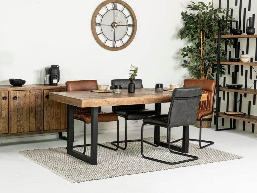 Découvrez la table à manger Brooklyn à plateau fixe et les chaises Grey Auburn : un ensemble captivant qui allie avec élégance le charme rustique au design contemporain. Fabriquées en bois massif recyclé, chaque pièce possède un caractère unique et s’intègre harmonieusement à la collection Brooklyn.