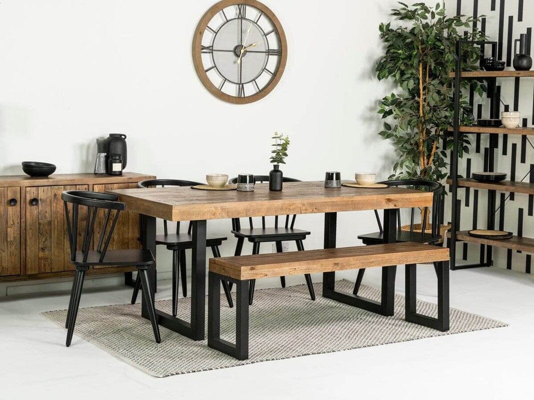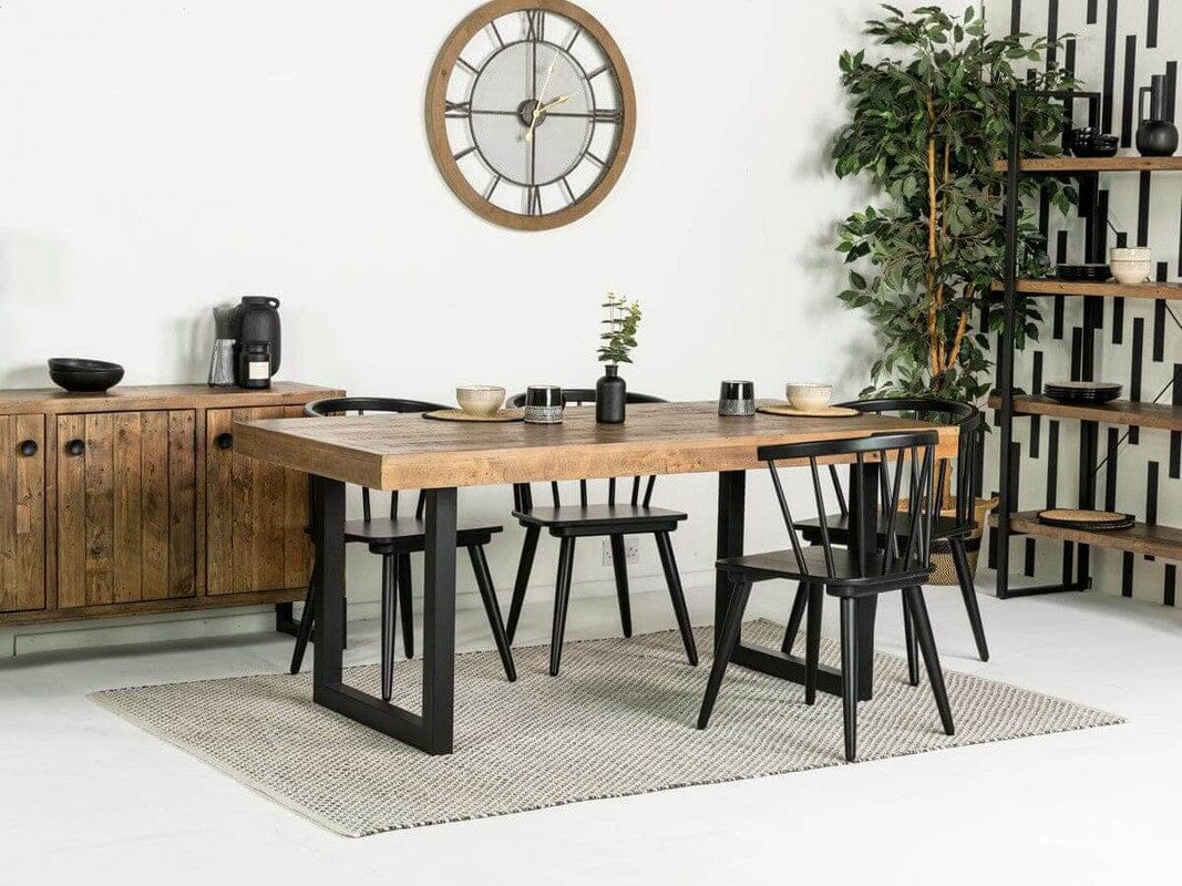 Découvrez la table à manger fixe Brooklyn et les chaises de salle à manger Bogart noires : un ensemble captivant qui allie avec élégance le charme rustique au design contemporain. Fabriquées en bois massif recyclé authentique, chaque pièce possède un caractère unique et s’intègre parfaitement à la collection Brooklyn.