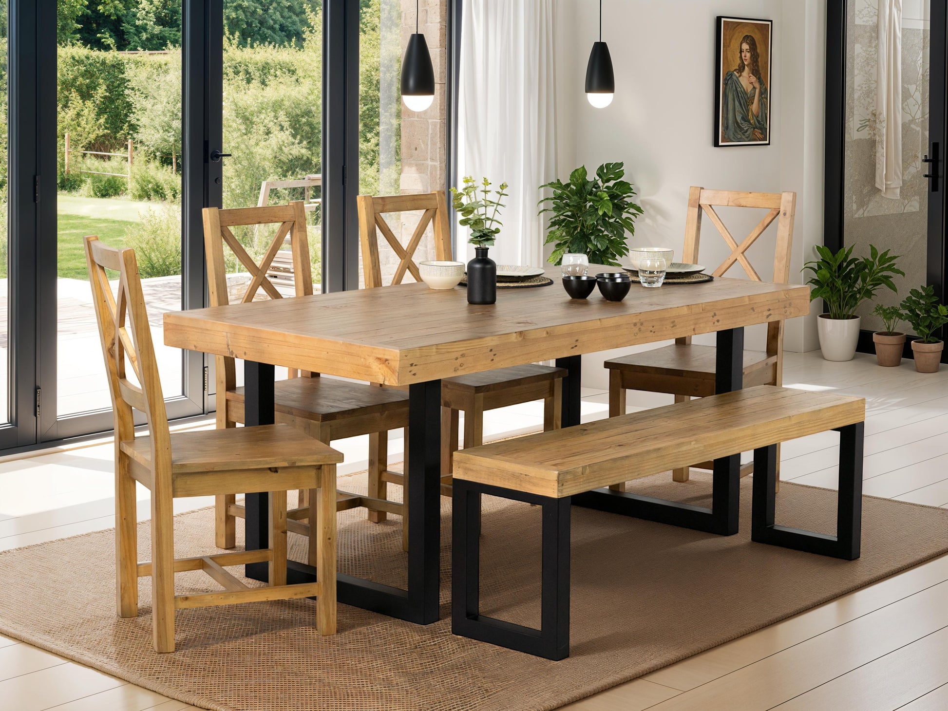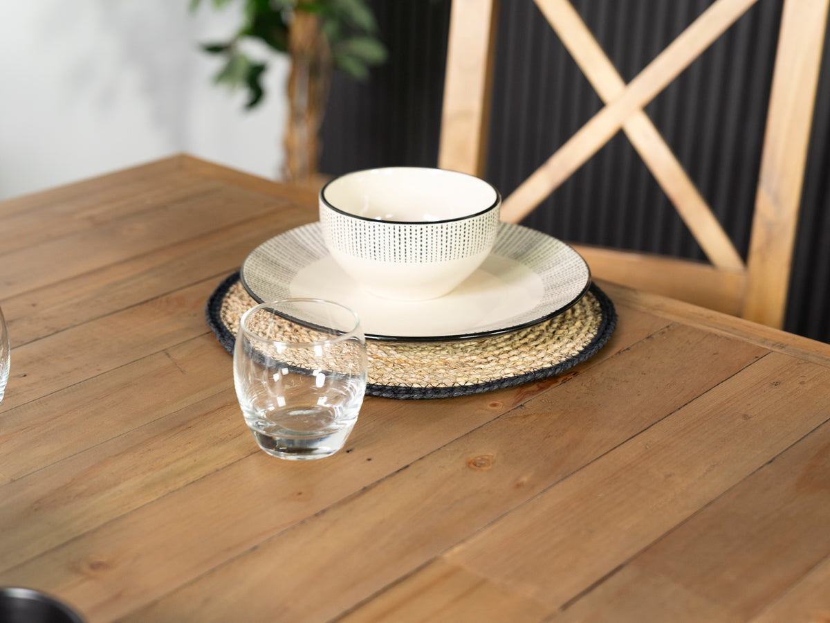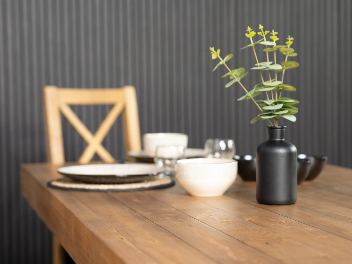La table de salle à manger fixe Brooklyn Light offre une polyvalence sans effort, s'harmonisant parfaitement avec des bancs assortis pour un style épuré ou avec des chaises de salle à manger rembourrées pour plus de contraste et de confort.