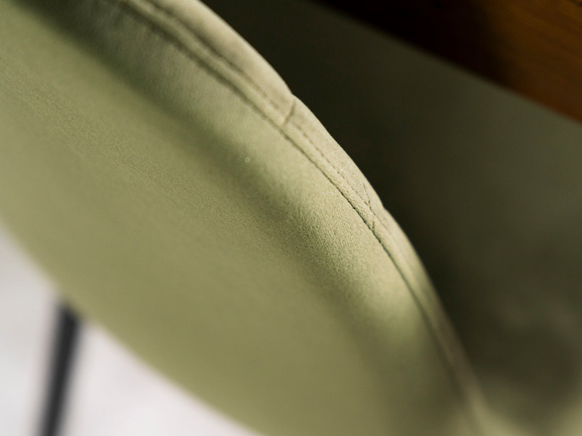 Parfaitement assorties à la table, les chaises de salle à manger Alston apportent une touche à la fois raffinée et confortable à l'ensemble. Revêtues d'un somptueux velours vert sauge, ces chaises offrent un rembourrage moelleux et des dossiers capitonnés qui invitent à prolonger les repas. Le capitonnage en losanges du dossier ajoute une note de charme classique, tandis que les pieds minimalistes en métal noir font écho à la structure de la table, créant ainsi un ensemble harmonieux et élégant.