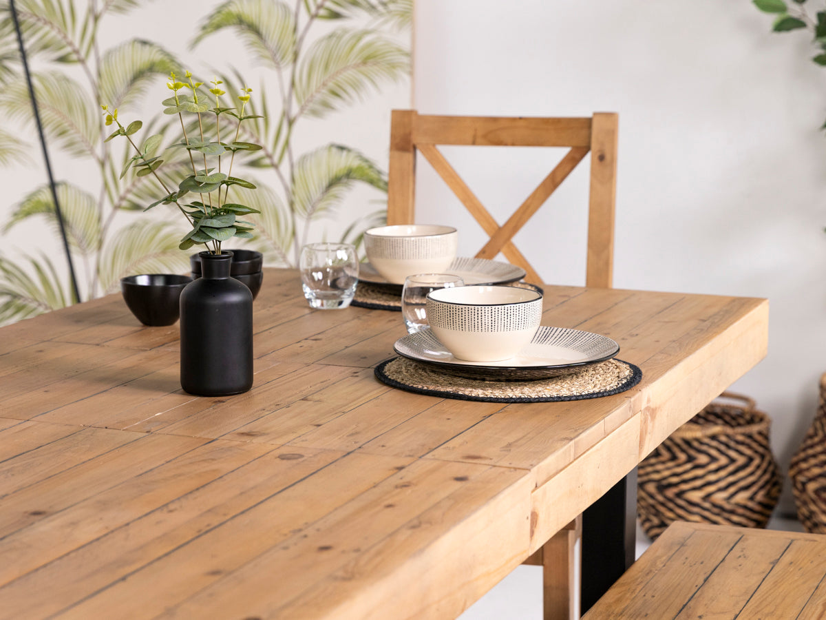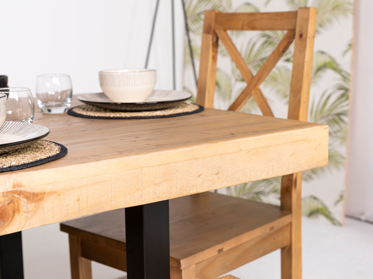 Fabriquée à partir de véritable bois de récupération, chaque chaise incarne un caractère unique, avec des motifs et des textures de grain de bois naturel qui racontent son histoire passée, ajoutant authenticité et une touche d'histoire à votre salle à manger.