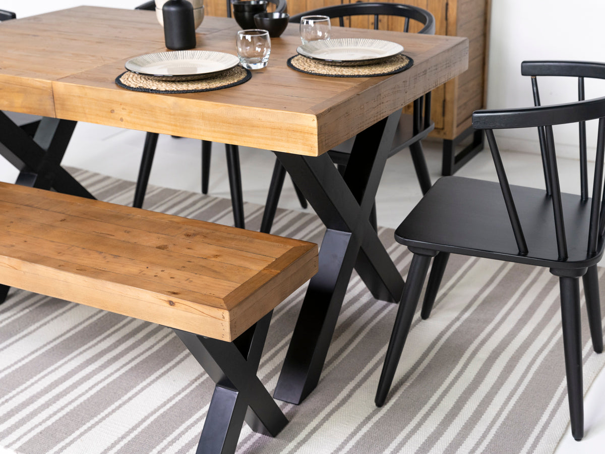 Conçu avec le souci de l'esthétique et de la fonctionnalité, ce banc présente une structure métallique robuste qui contraste harmonieusement avec la chaleur naturelle du bois recyclé. Cette association judicieuse de matériaux illustre le style emblématique de la collection Brooklyn, où les influences industrielles rencontrent un savoir-faire artisanal raffiné.