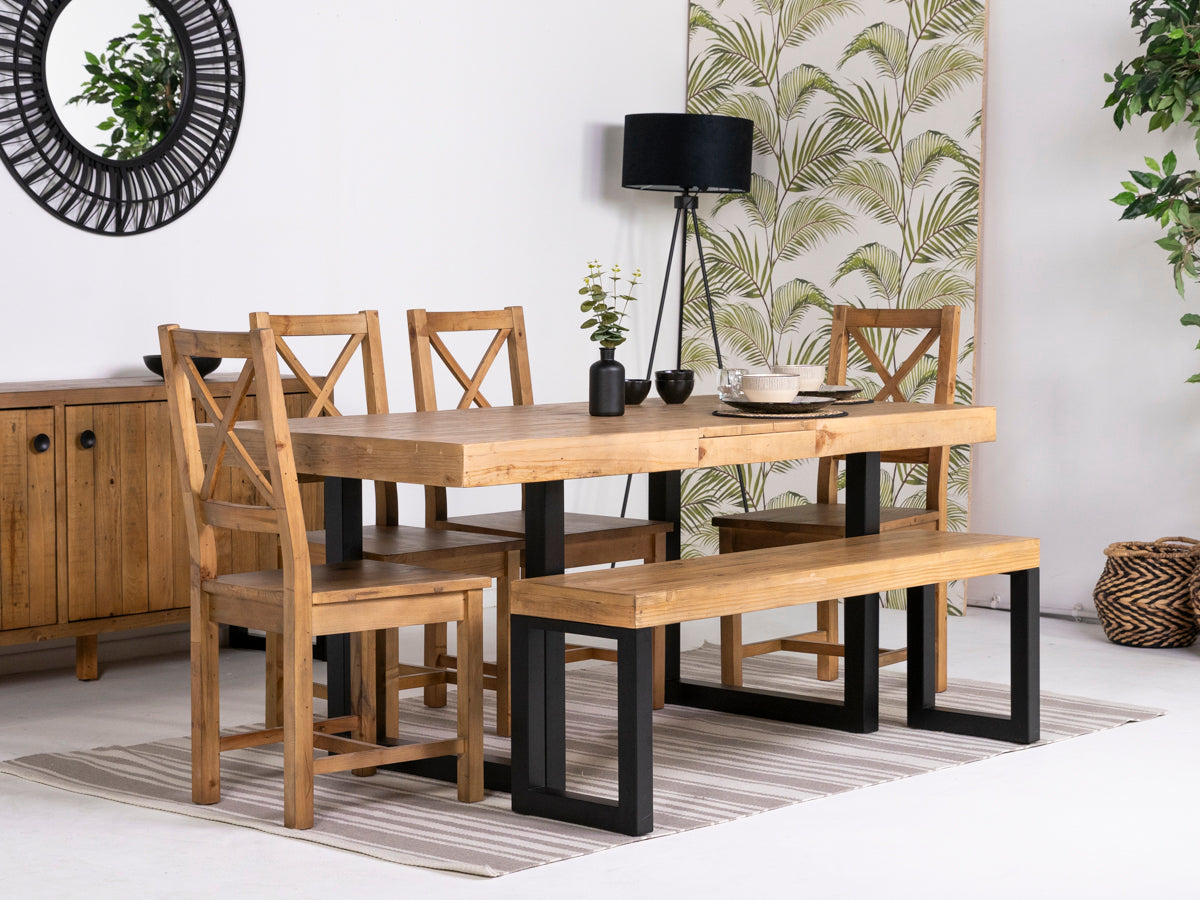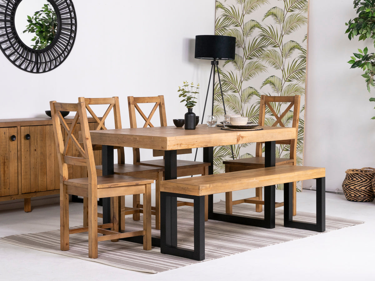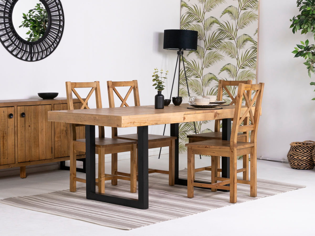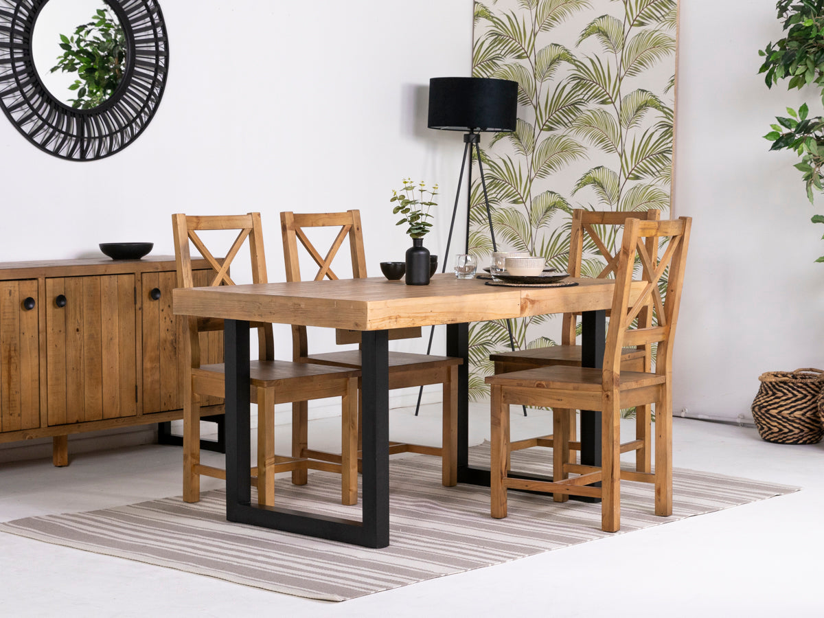 Les chaises de salle à manger Brooklyn Light à dossier croisé s'accordent parfaitement avec cette table, alliant esthétique et fonctionnalité. Fabriquées elles aussi à partir de bois recyclé, ces chaises arborent un dossier croisé classique qui apporte une touche d'élégance intemporelle à votre salle à manger.