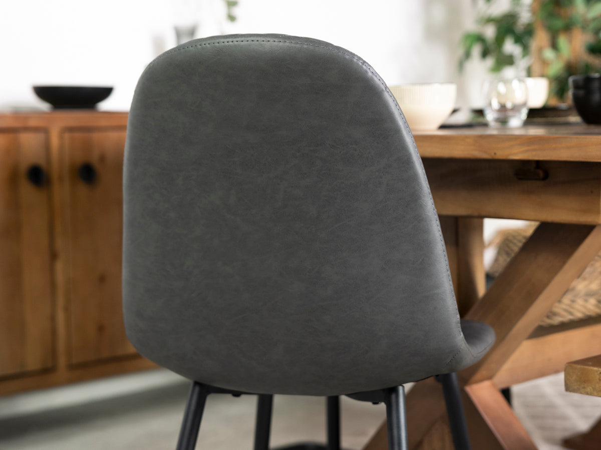 Les chaises de salle à manger Dallas, revêtues d'un élégant cuir PU gris, complètent harmonieusement la table. Conçues pour allier style et confort, elles offrent un rembourrage moelleux et un design raffiné avec des surpiqûres Bentley au dossier, ajoutant une touche de luxe. La teinte grise confère une allure contemporaine à l'ensemble, tandis que les pieds en métal noir, aux lignes épurées, font écho à la base de la table, créant ainsi une parfaite harmonie.