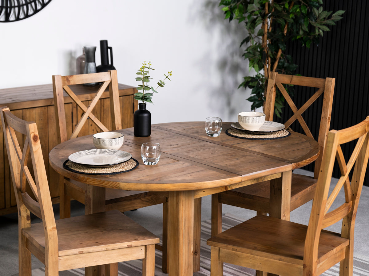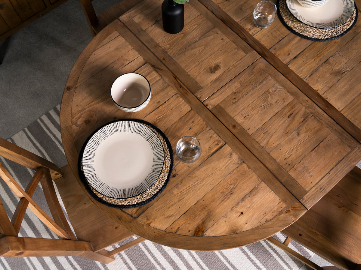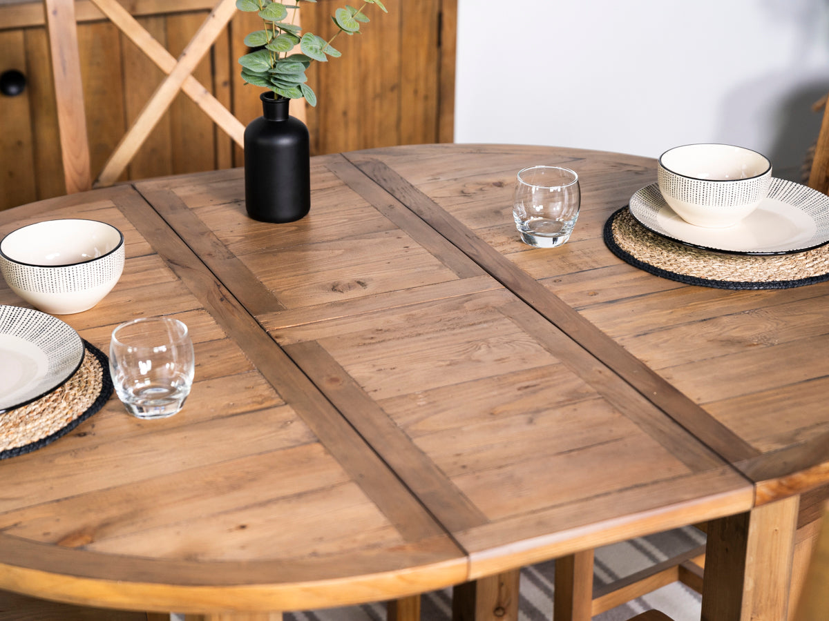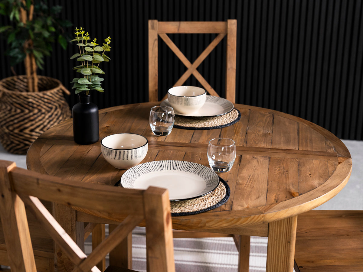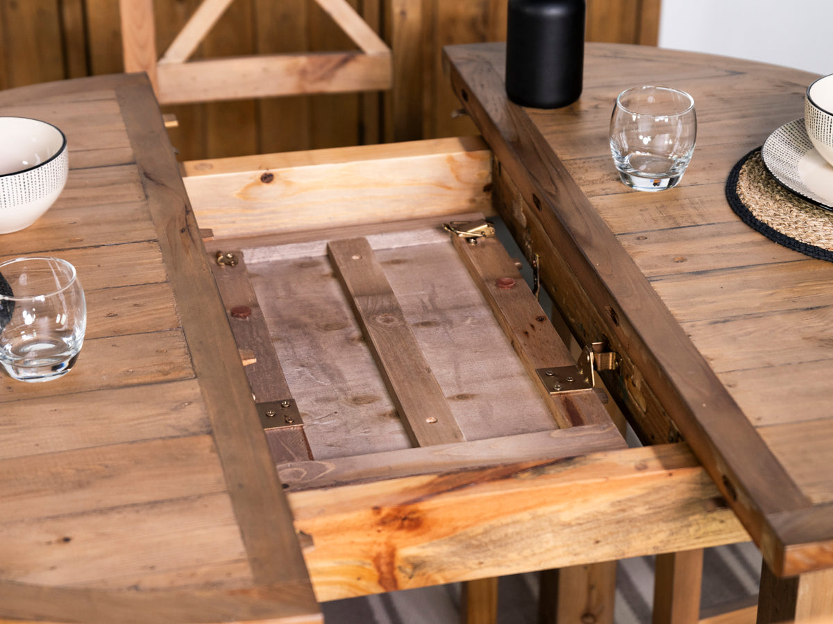 Découvrez la table de salle à manger ronde extensible Brooklyn Light : un ajout polyvalent et élégant à la collection Brooklyn Light, conçue avec soin pour apporter un charme intemporel et une fonctionnalité moderne à votre intérieur. Fabriquée en bois massif recyclé, chaque table révèle son caractère unique, célébrant la beauté naturelle et l’histoire des matériaux.