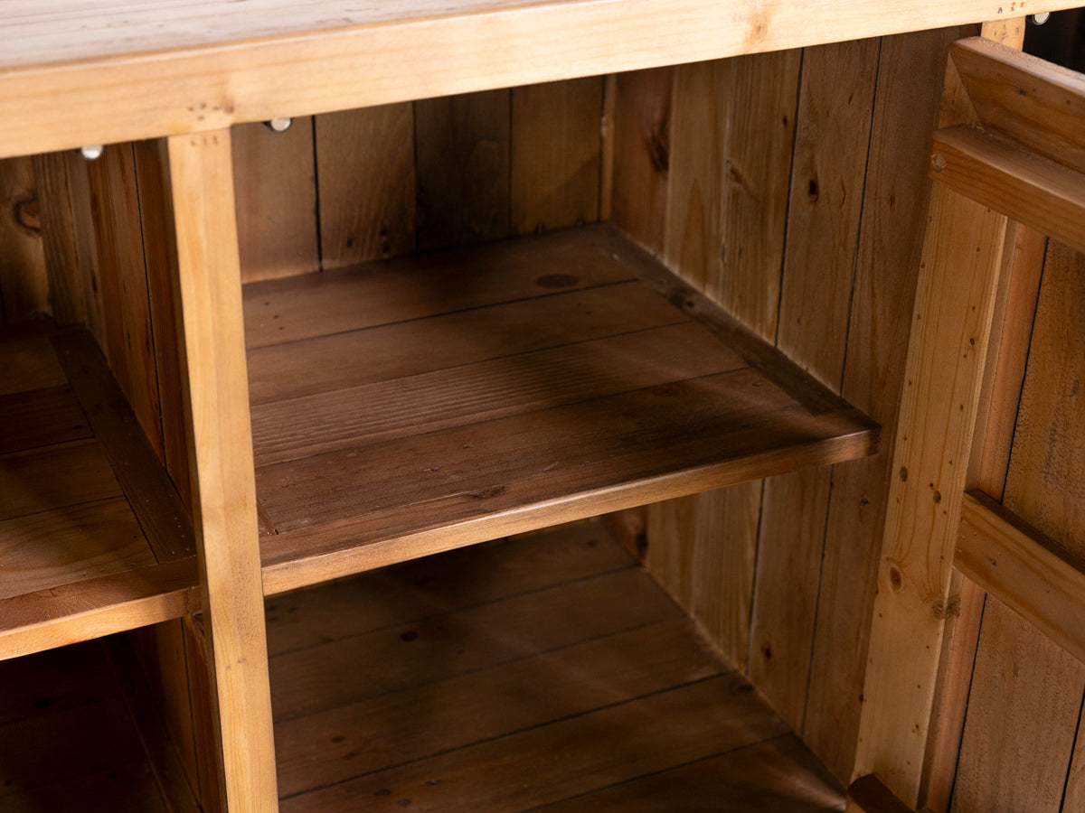 Fabriqué à partir de bois de récupération authentique, ce buffet possède un caractère distinctif, où chaque grain et chaque nœud raconte une histoire de sa vie passée, ajoutant une couche de profondeur et d'intrigue à votre espace de vie.
