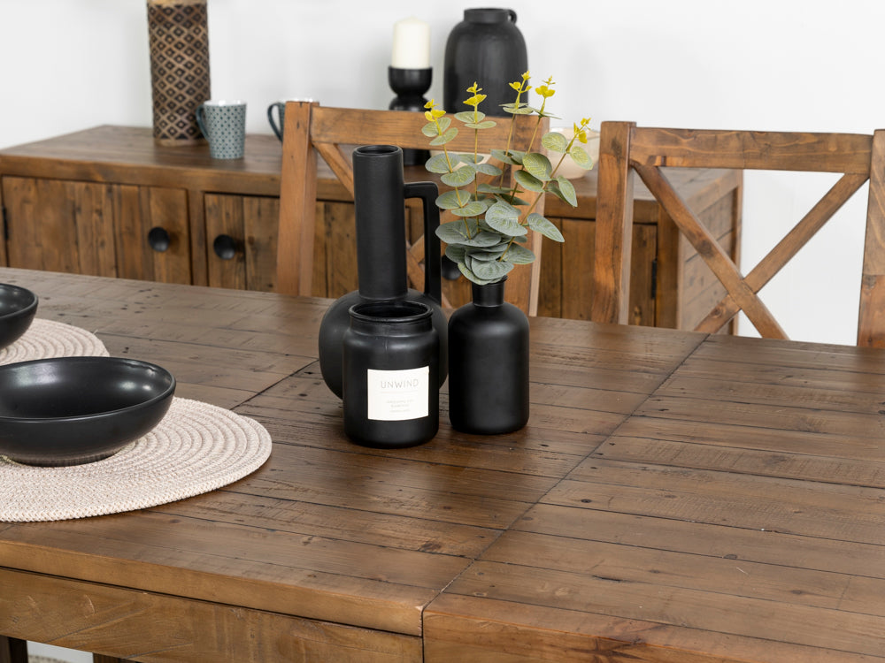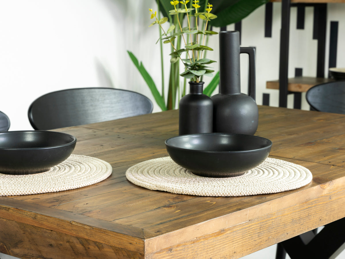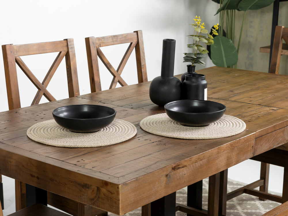 La table de salle à manger extensible Brooklyn, fabriquée en bois massif recyclé, s'agrandit sans effort pour accueillir davantage de convives, ce qui la rend idéale pour les dîners intimes comme pour les grandes réunions. Son caractère unique et sa fabrication soignée lui confèrent durabilité et élégance intemporelle.