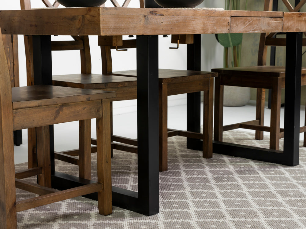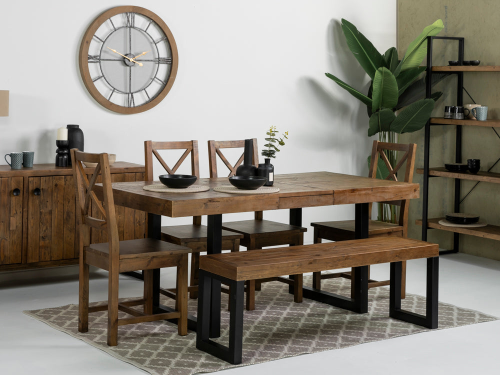Découvrez la table et le banc extensibles Brooklyn : un ensemble qui allie charme rustique et design moderne. Disponible en deux tailles (140 cm - 180 cm et 180 cm - 240 cm) et avec deux styles de pieds (en U ou croisés), cet ensemble polyvalent s’intègre harmonieusement à tous les intérieurs.