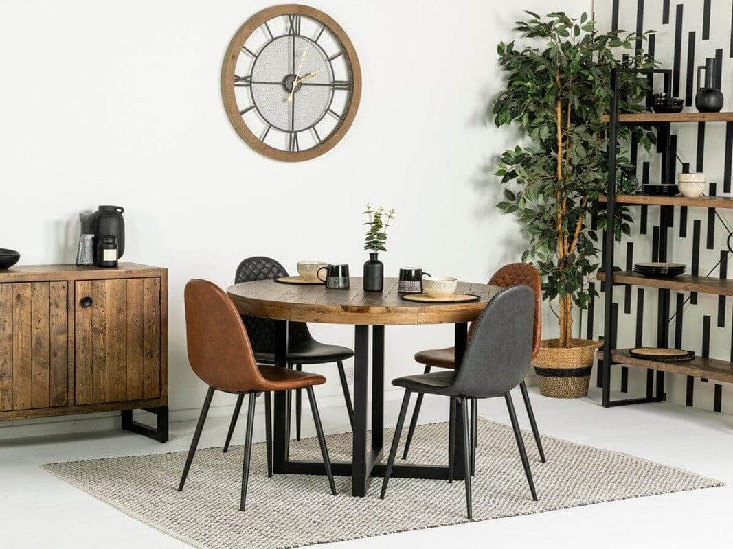 Découvrez la table ronde Brooklyn et les chaises de salle à manger Dallas marron : un ensemble captivant qui allie avec élégance le charme rustique au design contemporain. Fabriquées en bois massif recyclé, chaque pièce possède un caractère unique et s’intègre harmonieusement à la collection Brooklyn.