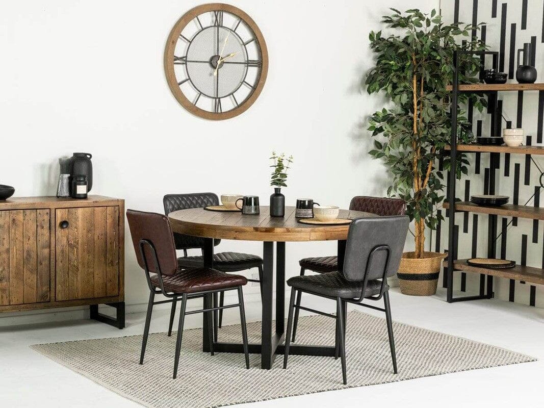 Découvrez la table ronde Brooklyn et les chaises de salle à manger grises Houston : un ensemble captivant qui allie avec élégance le charme rustique au design contemporain. Fabriquées en bois massif recyclé, chaque pièce possède un caractère unique et s’intègre harmonieusement à la collection Brooklyn.