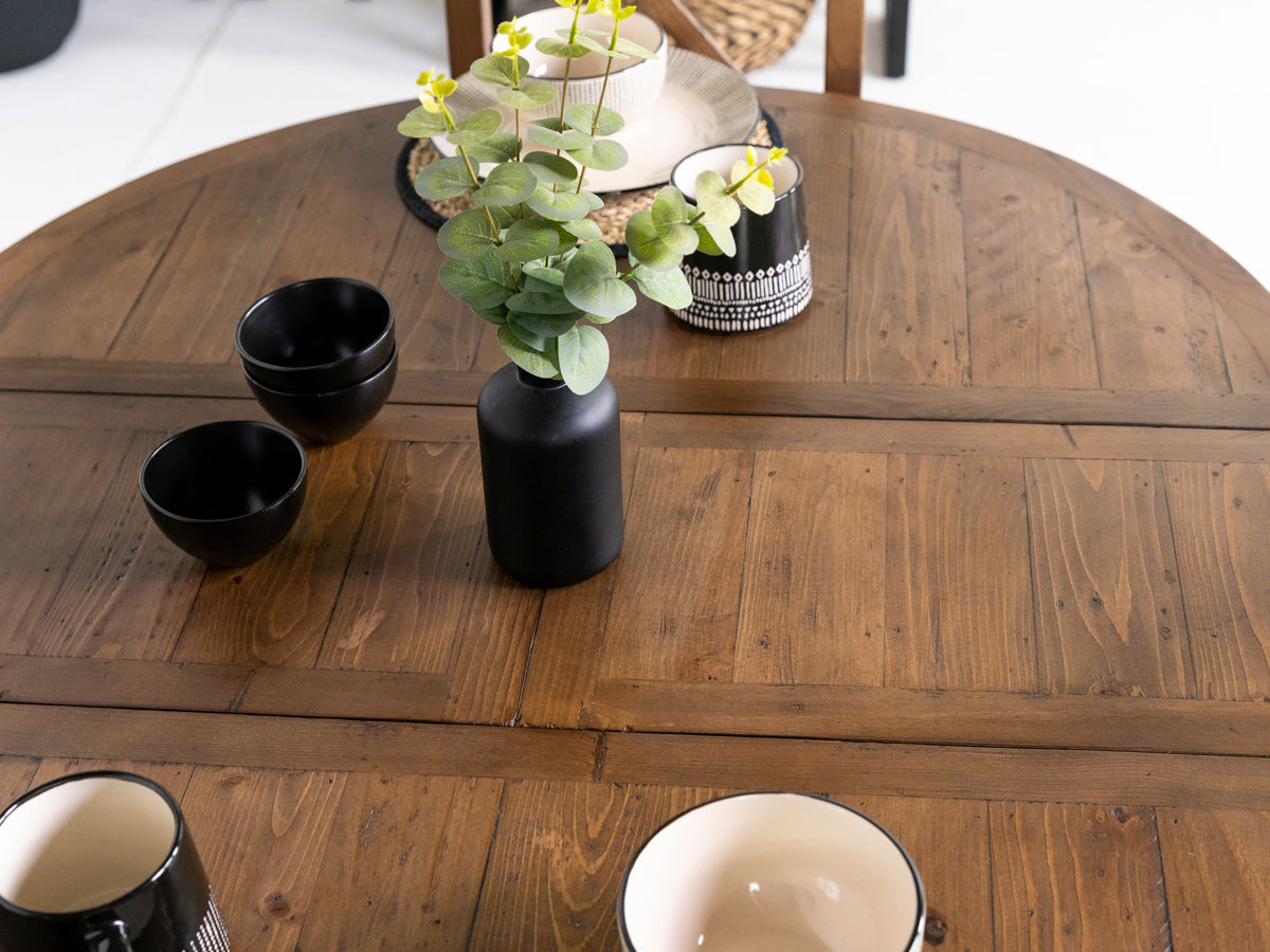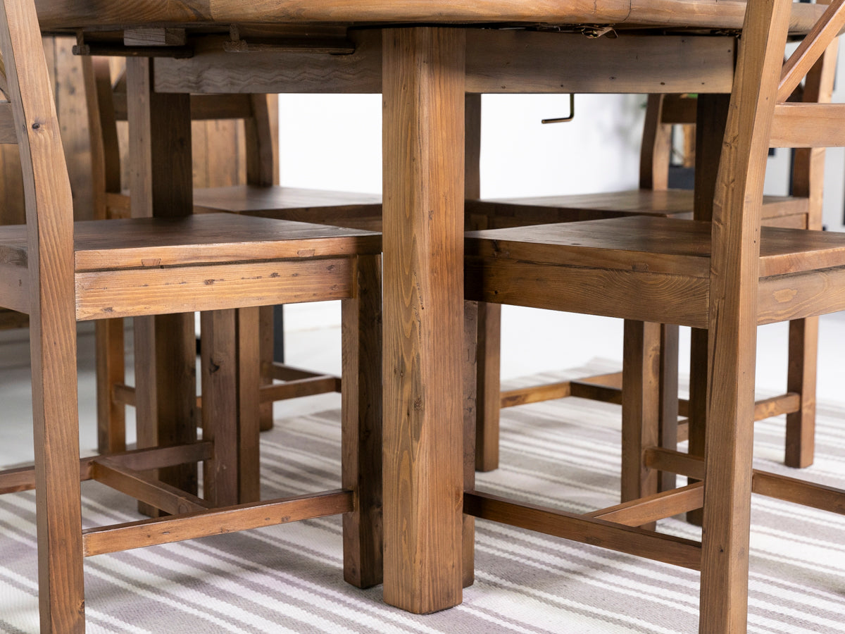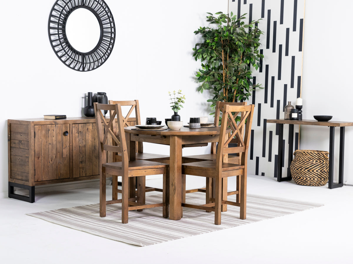 Découvrez la table de salle à manger ronde extensible Brooklyn, la toute dernière nouveauté de la collection Brooklyn. Conçue pour apporter à votre intérieur une élégance intemporelle et une fonctionnalité moderne, chaque table de cette collection, fabriquée en bois massif recyclé, possède un caractère unique et constitue une pièce véritablement exceptionnelle.