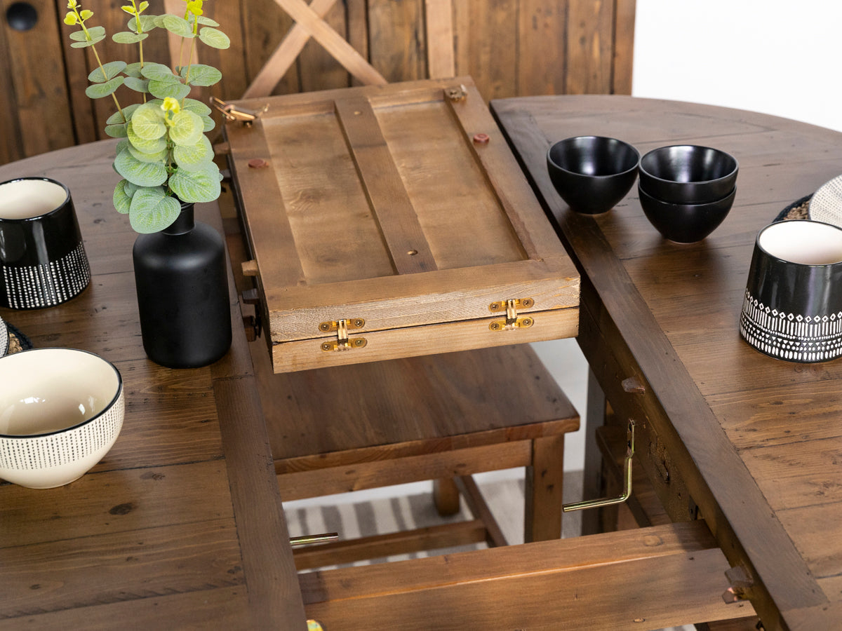 La table de salle à manger ronde extensible Brooklyn présente un design à la fois robuste et raffiné, alliant avec élégance un style industriel à un charme rustique. Elle s'intègre ainsi parfaitement aux intérieurs contemporains comme traditionnels. Cette pièce maîtresse remarquable témoigne de l'engagement de la collection Brooklyn envers la qualité, le savoir-faire et le style.