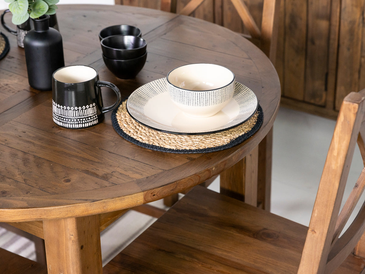 Cet ensemble offre un mélange harmonieux de charme rustique et de sophistication moderne, redéfinissant votre salle à manger avec un style à la fois intemporel et actuel. Appréciez l'équilibre parfait entre esthétique et fonctionnalité grâce à cette offre exceptionnelle, où savoir-faire artisanal et design élégant se conjuguent pour sublimer vos repas.
