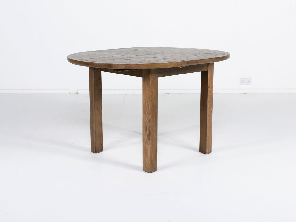 La table de salle à manger ronde extensible Brooklyn, fabriquée en bois massif recyclé, arbore une riche patine naturelle qui souligne le caractère unique de chaque pièce. Son design polyvalent comprend un plateau extensible qui passe en douceur de 100 cm à 130 cm, s'adaptant ainsi à tous les types de repas, des dîners intimes aux grandes réceptions. Avec sa teinte chaleureuse couleur noix de cajou, cette table apporte une touche d'élégance et de fonctionnalité à tout intérieur.