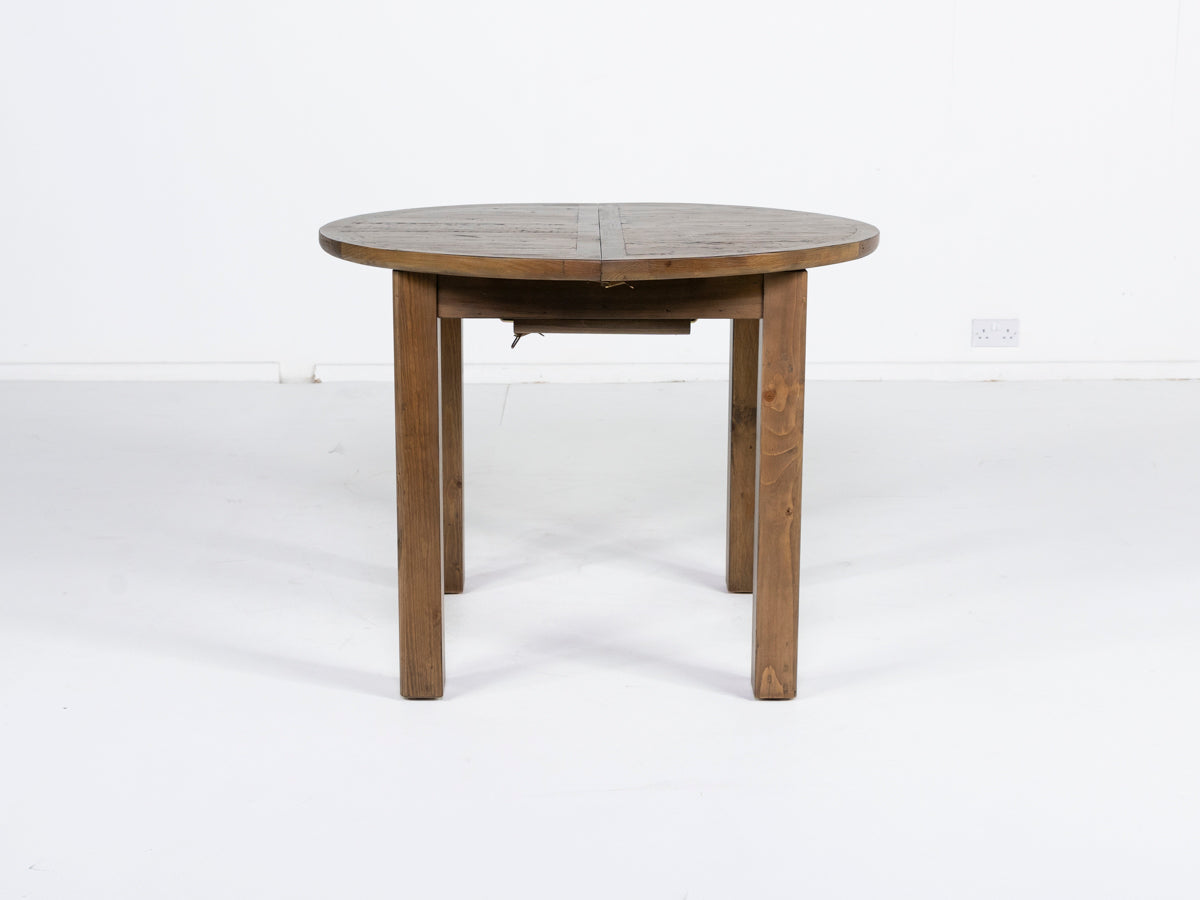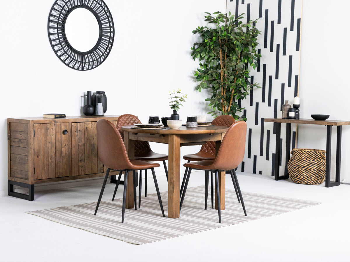 La table de salle à manger ronde extensible Brooklyn, pièce maîtresse de la collection Brooklyn, est fabriquée en bois massif recyclé, révélant le caractère unique de chaque pièce. Son design innovant permet une extension de 100 cm à 130 cm, offrant ainsi une grande polyvalence pour les repas intimes comme pour les grandes réceptions. Sa finition couleur noix de cajou met en valeur la beauté naturelle du bois et confère à votre salle à manger une atmosphère chaleureuse et accueillante.