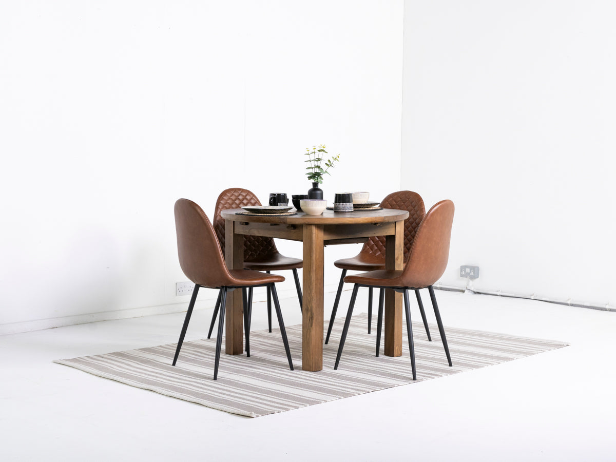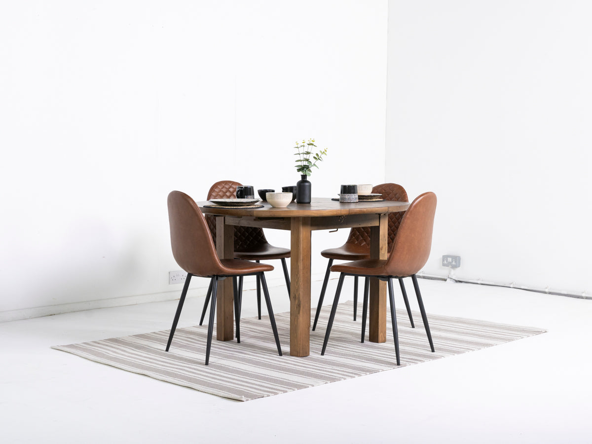 Transformez votre salle à manger avec l'ensemble table à manger ronde extensible Brooklyn et chaises de salle à manger Dallas couleur fauve, une combinaison superbe qui allie charme classique et élégance moderne.