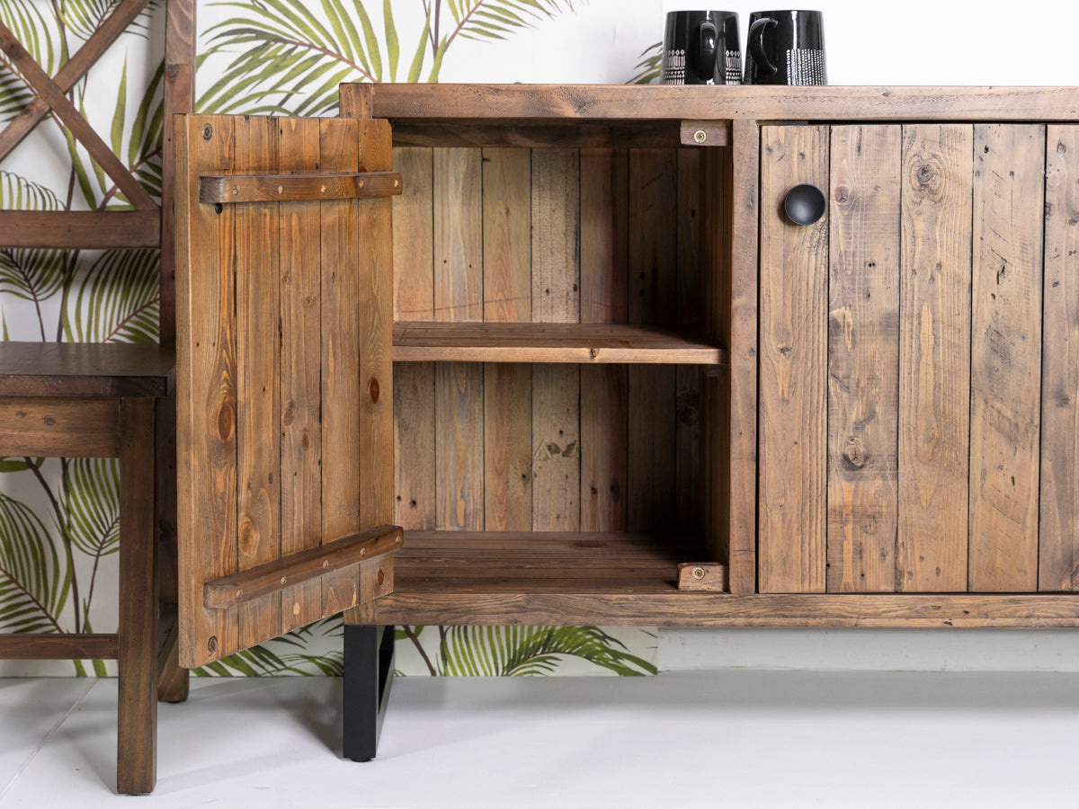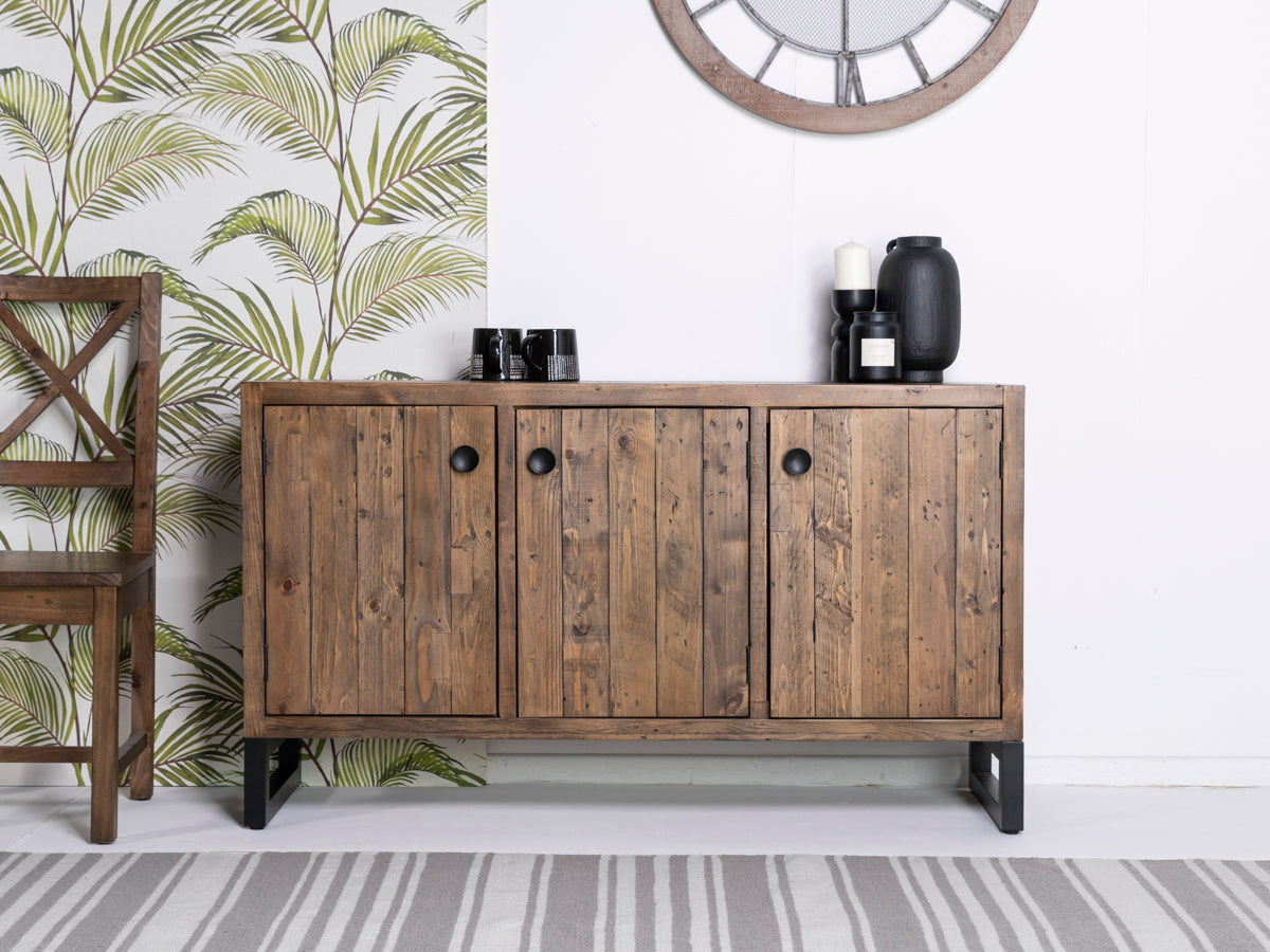 Découvrez le buffet Brooklyn, une pièce maîtresse d'une élégance rustique et d'un design contemporain. Fabriqué en bois massif recyclé authentique, chaque meuble est unique et s'intègre parfaitement à la collection Brooklyn.
