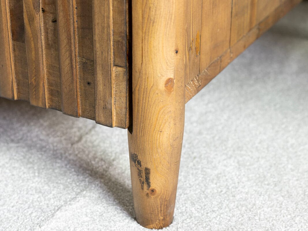 La palette de bruns, harmonieusement intégrée à la finition chêne blanchi, confère à l'armoire Cairo un charme intemporel. Le bois de récupération, avec son grain unique et ses imperfections authentiques, transforme votre espace en un havre d'authenticité et de bien-être. Bien plus qu'un simple meuble de rangement, cette armoire incarne un engagement à la fois pour le style et la durabilité.
