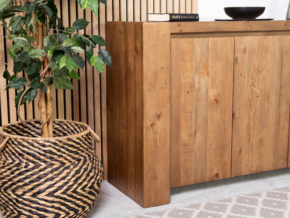 Le buffet Colorado en bois de récupération allie à la perfection charme rustique et fonctionnalité. Fabriqué à partir de bois issu de forêts gérées durablement, il révèle des textures riches, des motifs de grain naturels et une finition patinée intemporelle.