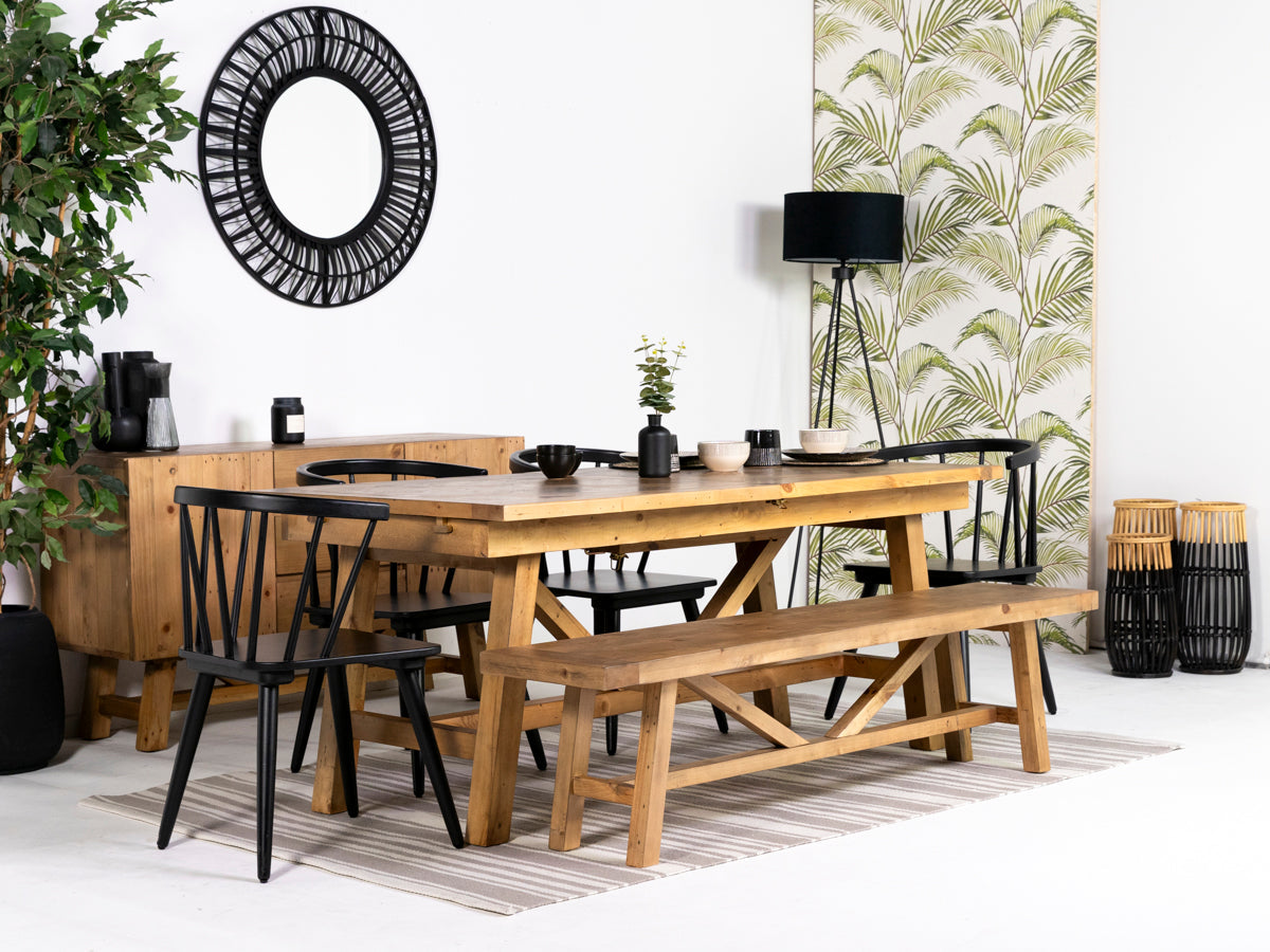 Avec son magnifique grain de bois naturel et son design robuste inspiré des fermes traditionnelles, cette table apporte chaleur et caractère à n'importe quelle maison, s'harmonisant sans effort avec les intérieurs modernes et classiques.