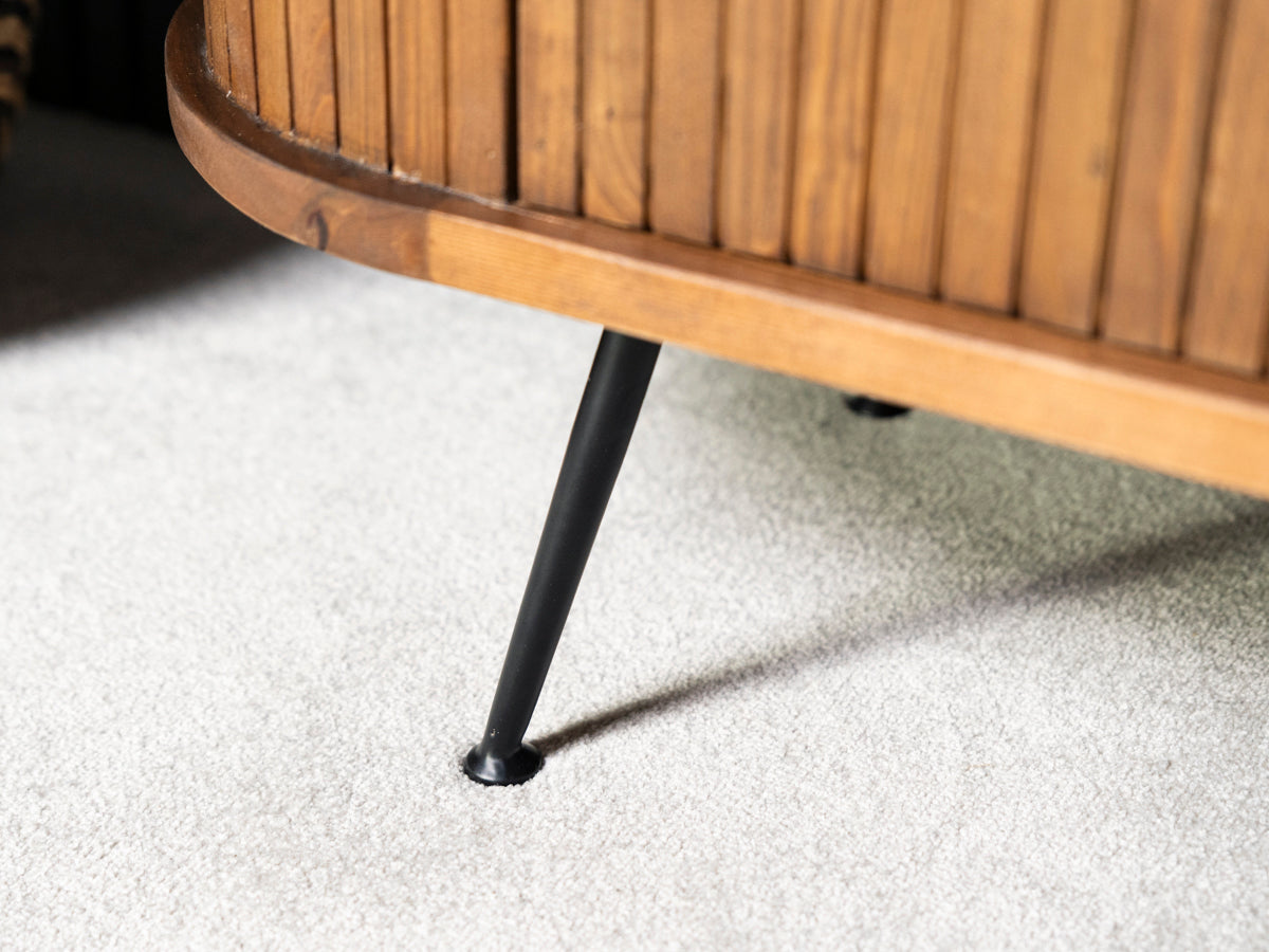 Avec ses portes à ouverture par simple pression et ses étagères spacieuses, ce meuble est conçu pour ranger soigneusement appareils multimédias et accessoires. Son profil incurvé et ses pieds noirs fins lui confèrent une allure légère et élégante qui s'harmonise avec tous les styles d'intérieur.