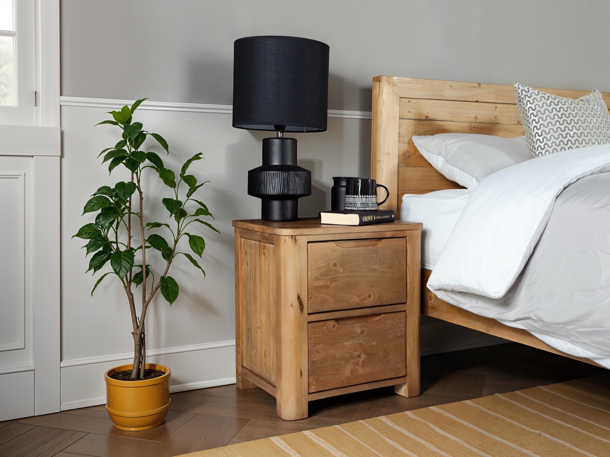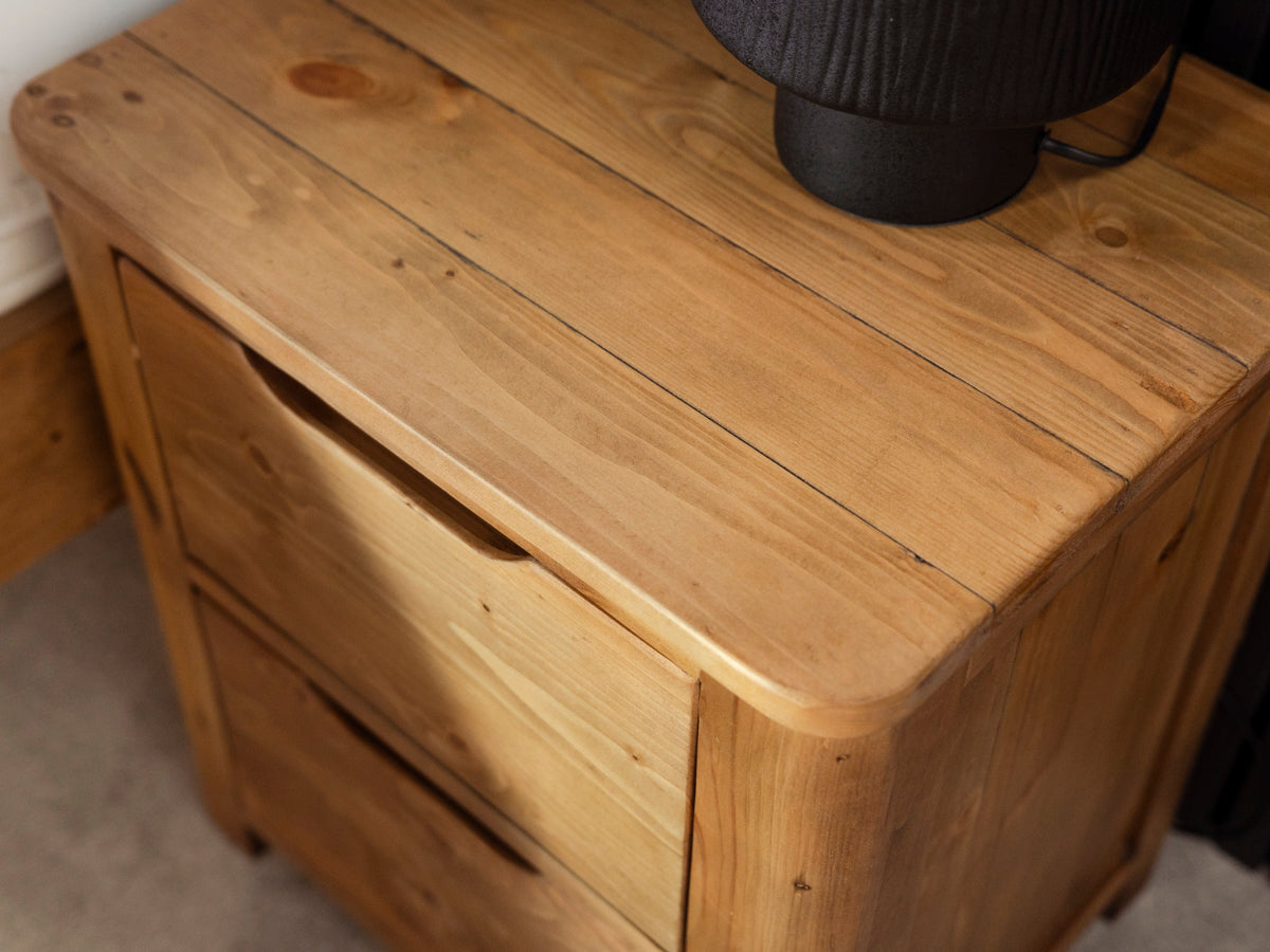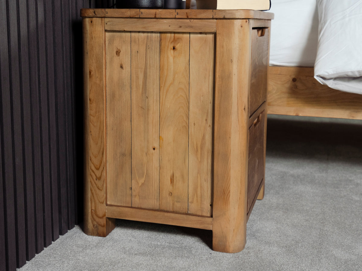 Découvrez la table de chevet Exeter à 2 tiroirs – une alliance parfaite de charme rustique et de design pratique, soigneusement conçue pour apporter un caractère naturel et un attrait intemporel à votre chambre.