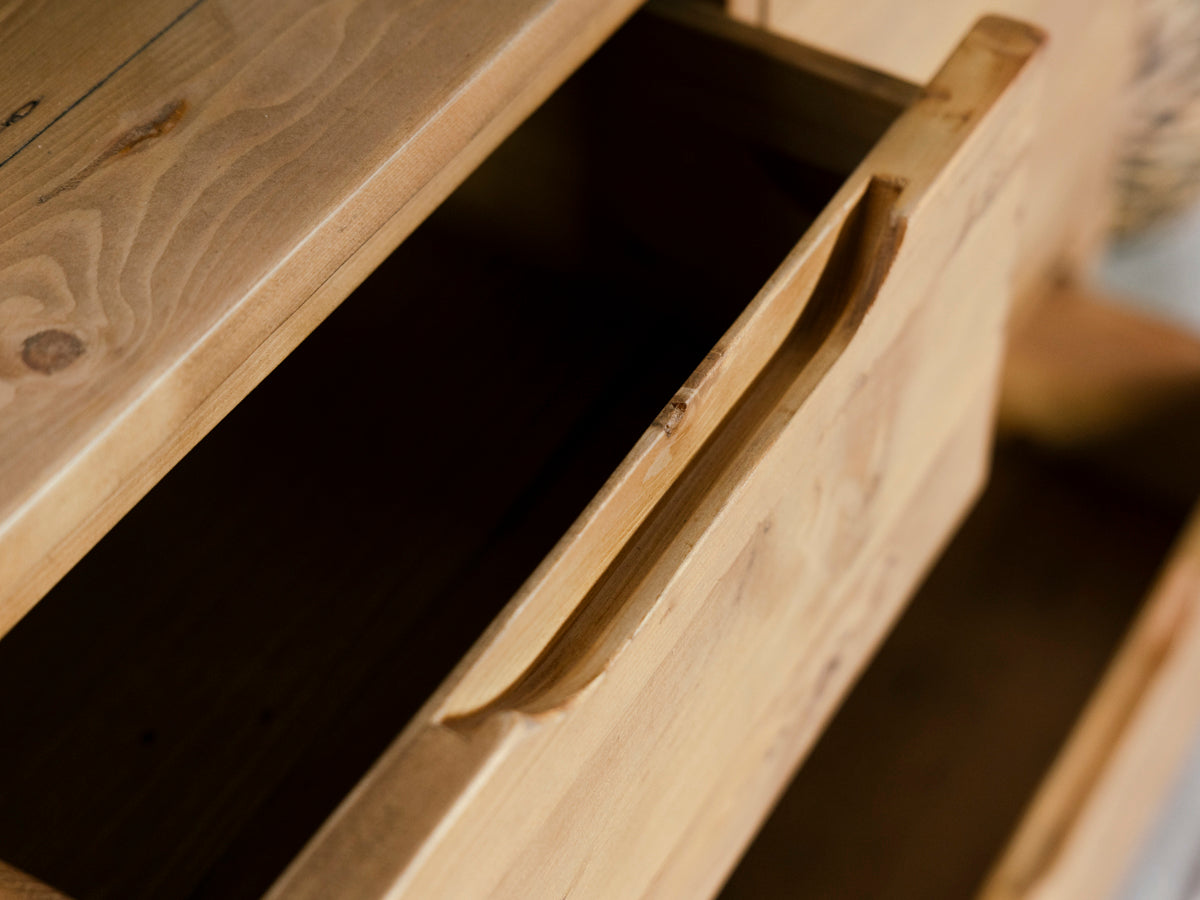 Chaque coffre est fini à la main pour mettre en valeur le grain naturel, les nœuds et le caractère du bois. Chaque pièce est unique, et c'est tant mieux. Son aspect légèrement patiné apporte chaleur et texture, tandis que ses lignes épurées et sa structure robuste lui permettent de s'intégrer harmonieusement dans des intérieurs modernes comme traditionnels.