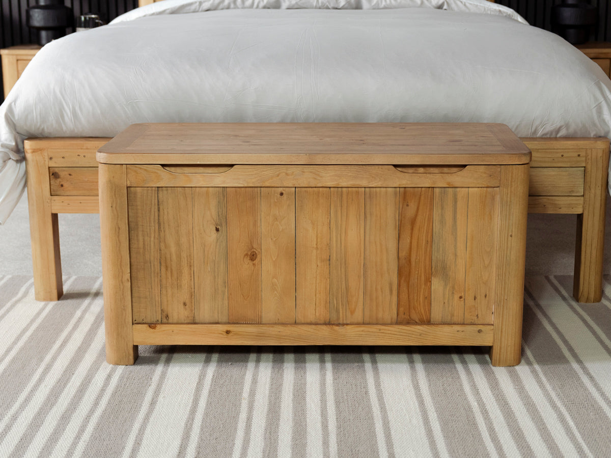 Avec son charme rustique et sa praticité au quotidien, le coffre à couvertures Exeter est un meuble de rangement polyvalent fabriqué en bois massif recyclé. Issu de notre collection Exeter, il est conçu pour apporter chaleur, texture et fonctionnalité à n'importe quelle pièce de votre maison.