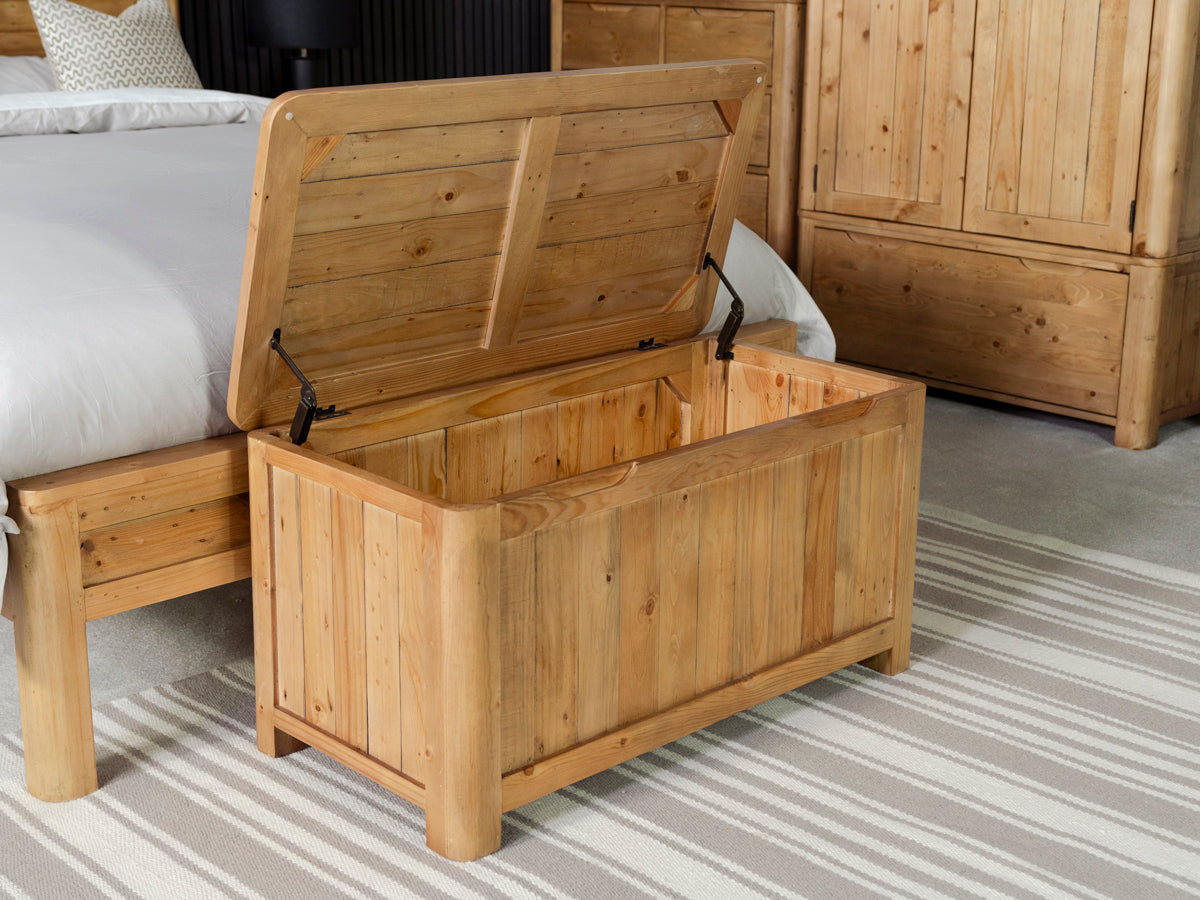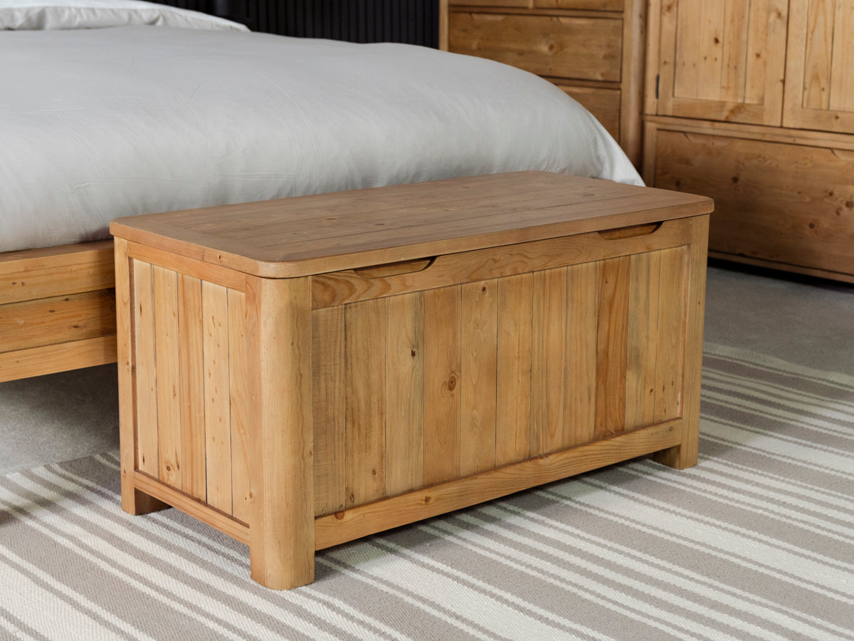 Que vous l'utilisiez pour ranger des affaires, comme siège ou simplement comme objet de décoration, le coffre à couvertures Exeter offre un style intemporel ancré dans le développement durable.