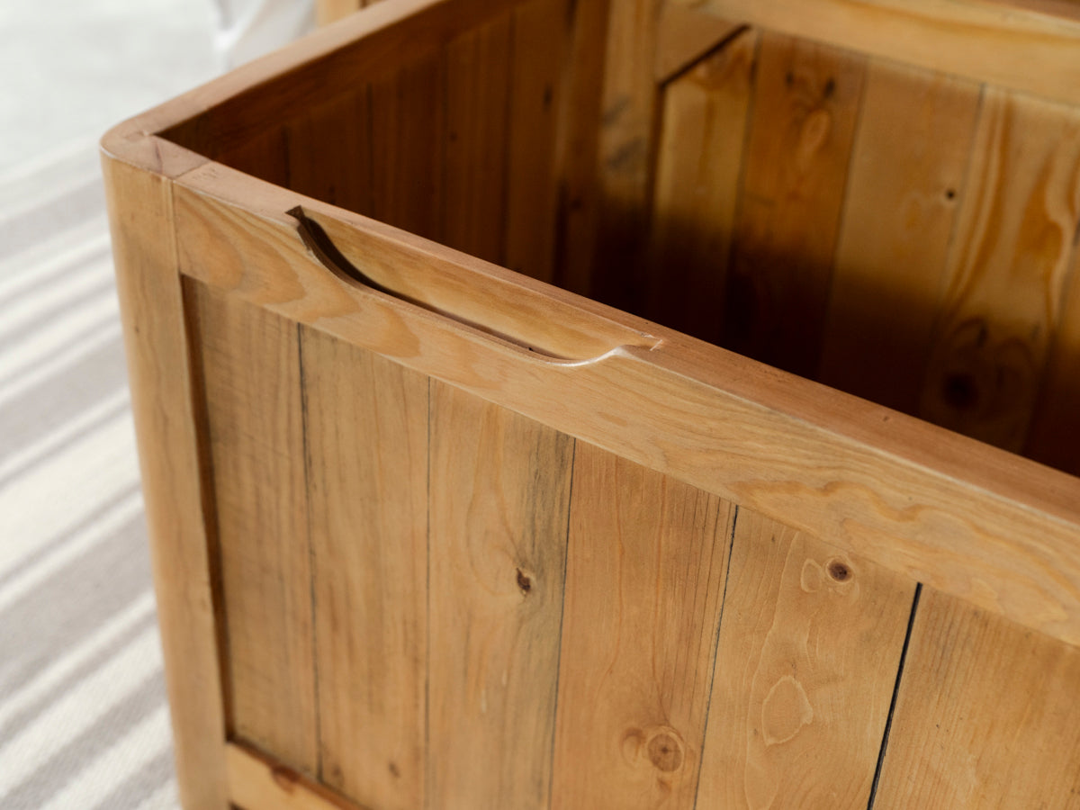 Chaque boîte est finie à la main pour mettre en valeur le caractère naturel du bois : veinage, nœuds et marques du temps témoignent de son histoire. Il en résulte une pièce unique qui apporte profondeur et authenticité à votre intérieur.