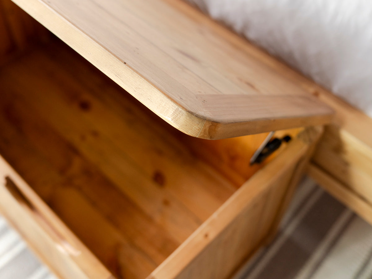 Grâce à son grand espace de rangement intérieur, il est idéal pour ranger couvertures, draps, coussins ou tout autre objet que vous préférez dissimuler. Sa construction robuste et son design épuré et discret lui permettent de trouver parfaitement sa place au pied d'un lit, sous une fenêtre ou même comme banc dans une entrée.