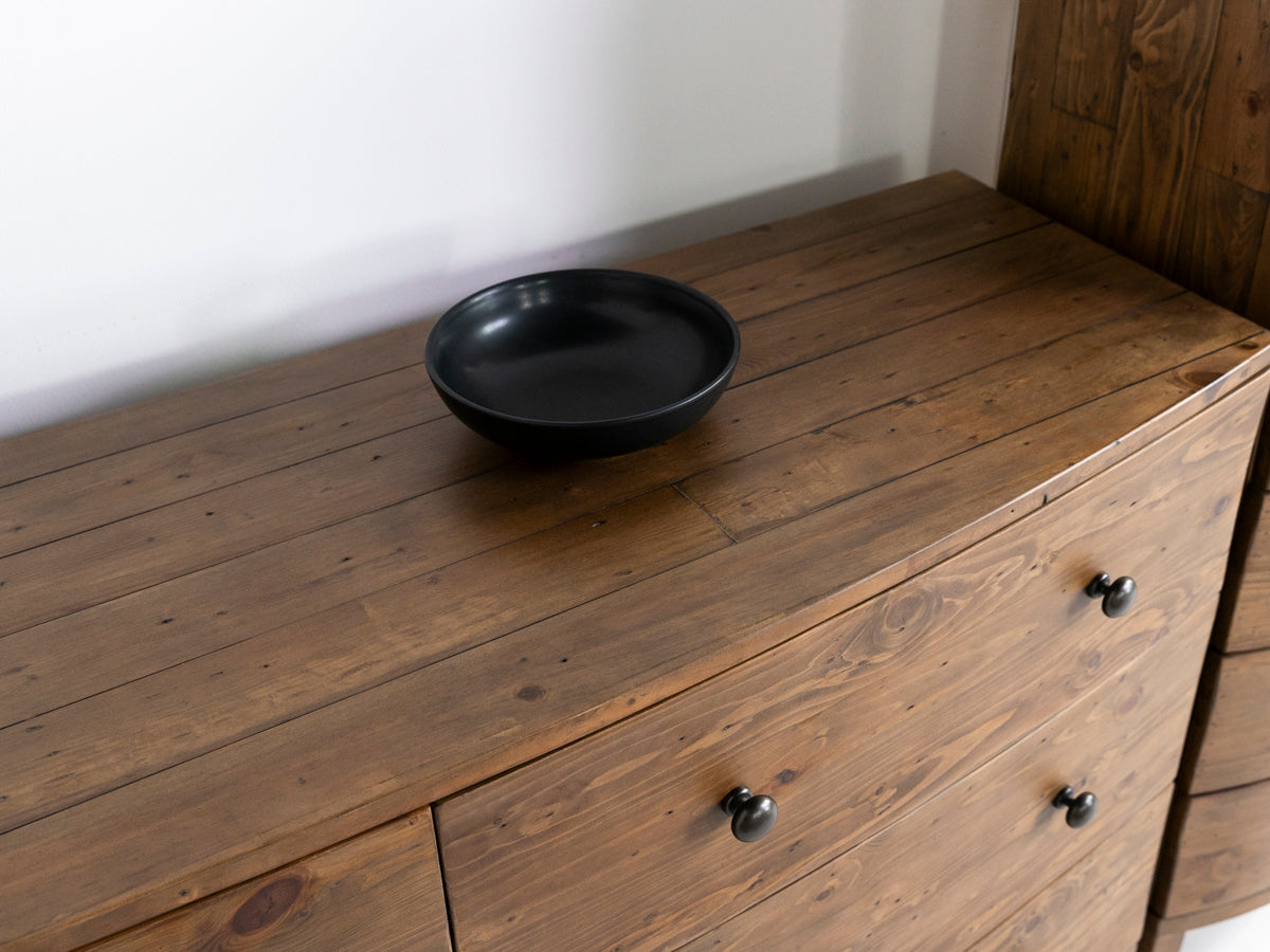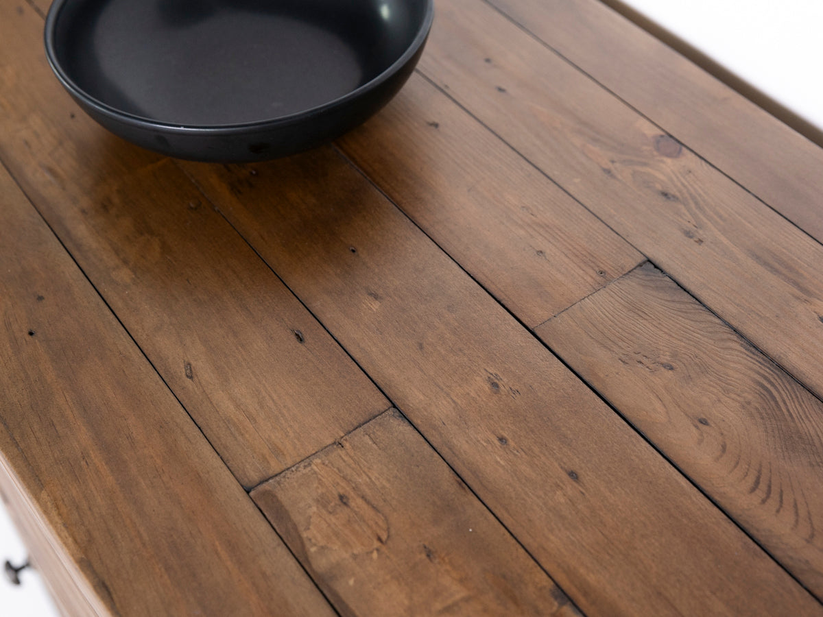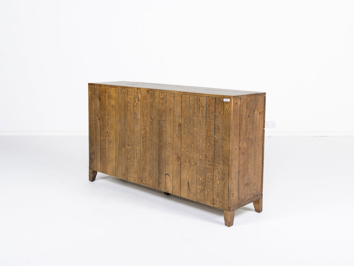 Fabriquée en bois massif recyclé, cette large commode arbore une superbe finition couleur noix de cajou qui met en valeur le grain naturel, garantissant ainsi que chaque pièce est aussi unique que l'espace qu'elle orne.