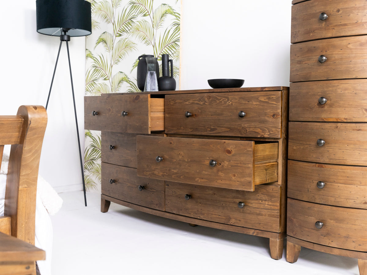 Faisant partie de la collection Hawaii, cette commode allie harmonieusement beauté naturelle et fonctionnalité, offrant un équilibre parfait entre style, rangement et savoir-faire. Transformez votre chambre en un havre de paix avec la commode Hawaii à 6 tiroirs : un parfait équilibre entre élégance et praticité au quotidien.