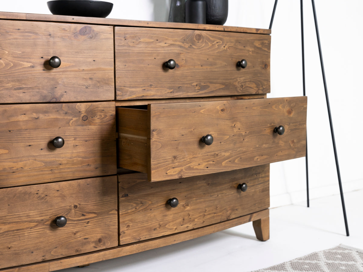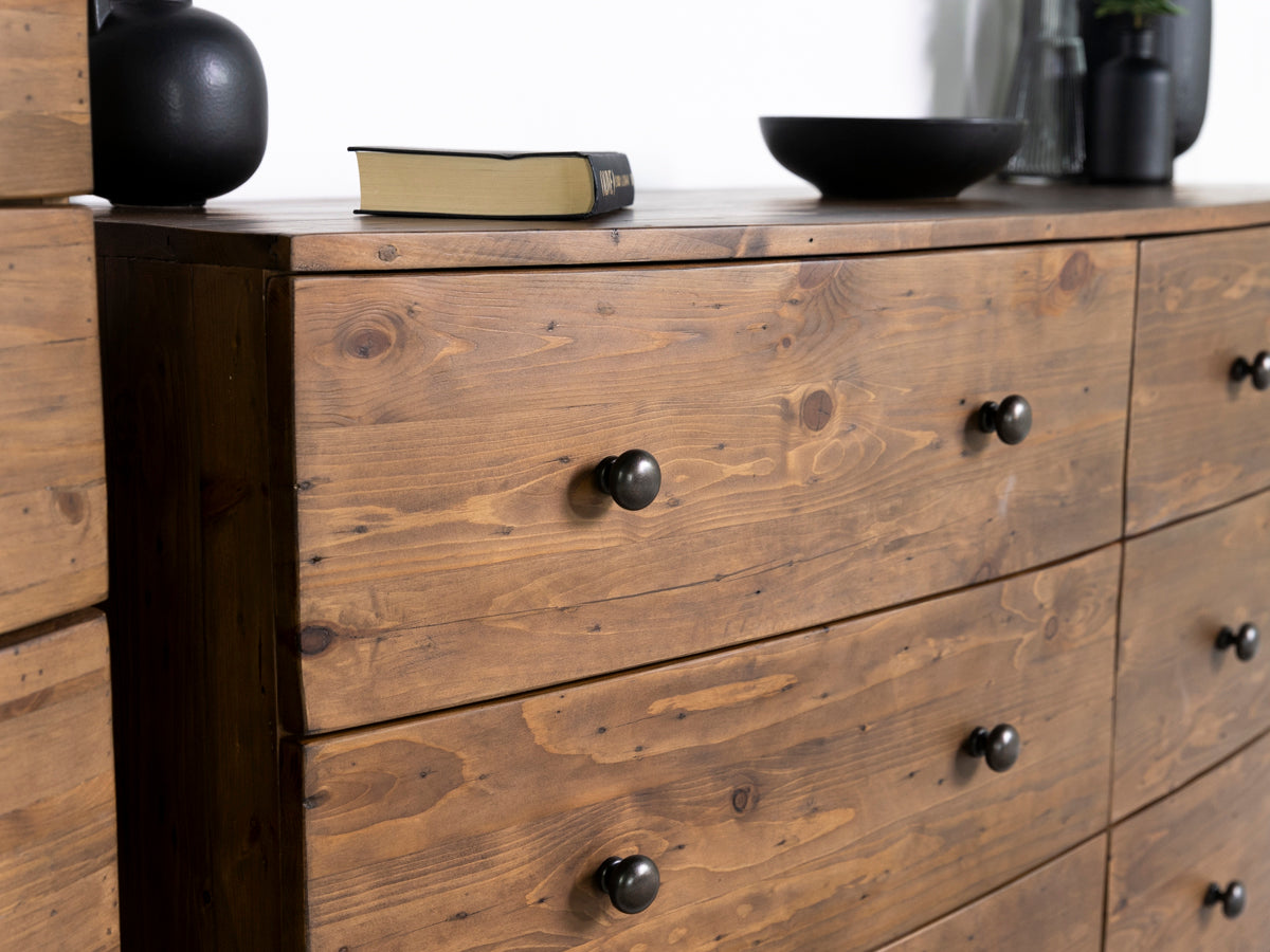 Son profil large et sa conception bien pensée font de cette commode un meuble polyvalent, que vous cherchiez à compléter un décor contemporain ou à apporter une ambiance rustique et côtière à votre pièce.