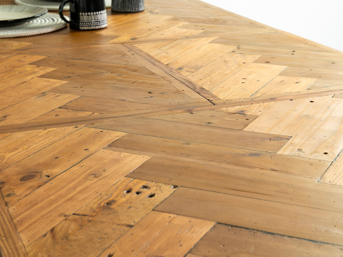 Conçue avec précision et soin, la table de salle à manger extensible Mode allie élégance rustique et raffinement moderne. Fabriquée en bois massif recyclé authentique, chaque table est unique et son plateau à chevrons témoigne du savoir-faire artisanal qui a présidé à sa création.