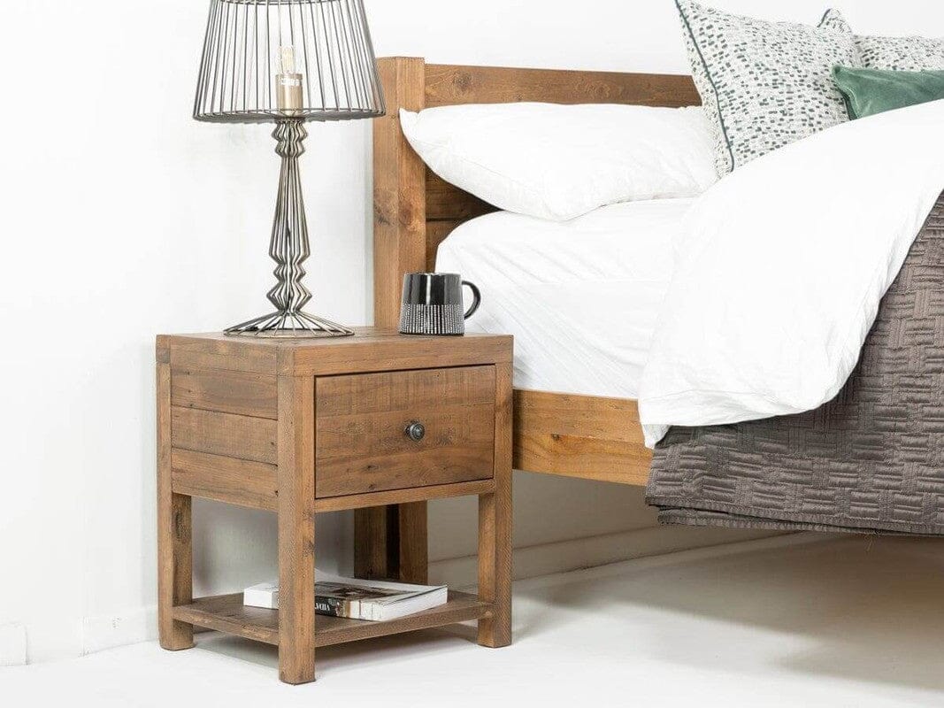 Ce meuble compact et élégant est idéal pour mettre en valeur une lampe ou poser vos livres préférés au lit. La table de chevet Montreal à un tiroir est non seulement pratique, mais elle contribue également à créer une ambiance chaleureuse et accueillante dans votre chambre grâce à son charme rustique. Parfait exemple de l'alliance entre design durable et style intemporel, cette table de chevet est une pièce maîtresse dans toute chambre.