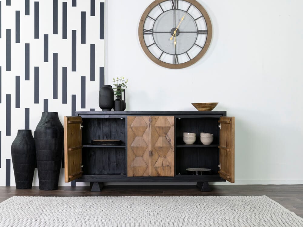 Reposant sur d'élégants pieds en bois à la riche finition chêne, le buffet Pyramid témoigne d'une parfaite harmonie entre style et stabilité. Ces pieds assurent non seulement un soutien optimal, mais apportent également une touche de sophistication naturelle, créant une esthétique cohérente qui s'accorde avec différents styles d'intérieur.