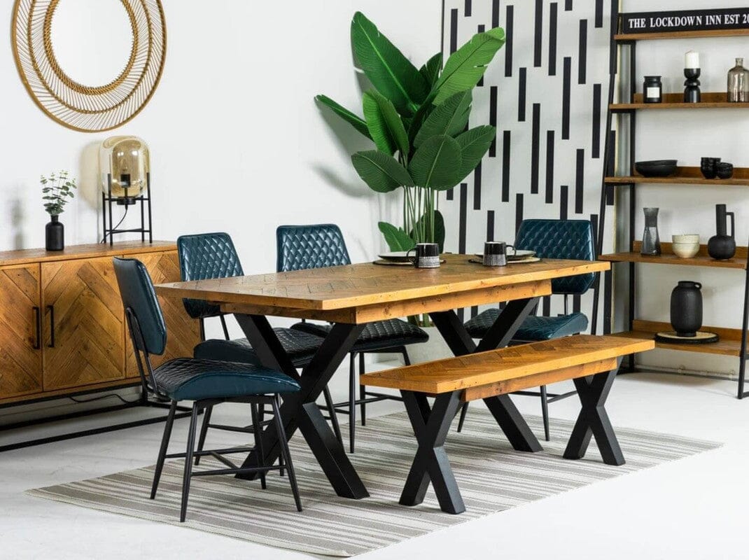 Table de salle à manger extensible à pieds croisés Tulsa (140 cm - 180 cm) et banc de salle à manger