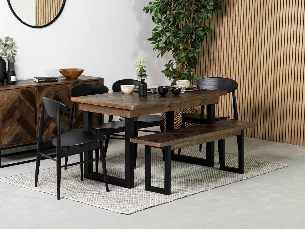 Créez un espace repas à la fois élégant et durable grâce à l'ensemble table à manger fixe Tulsa Dark 135 cm et chaises de salle à manger noires Gabo. Cet élégant duo allie le charme rustique du bois recyclé au design épuré et contemporain des chaises modernes.
