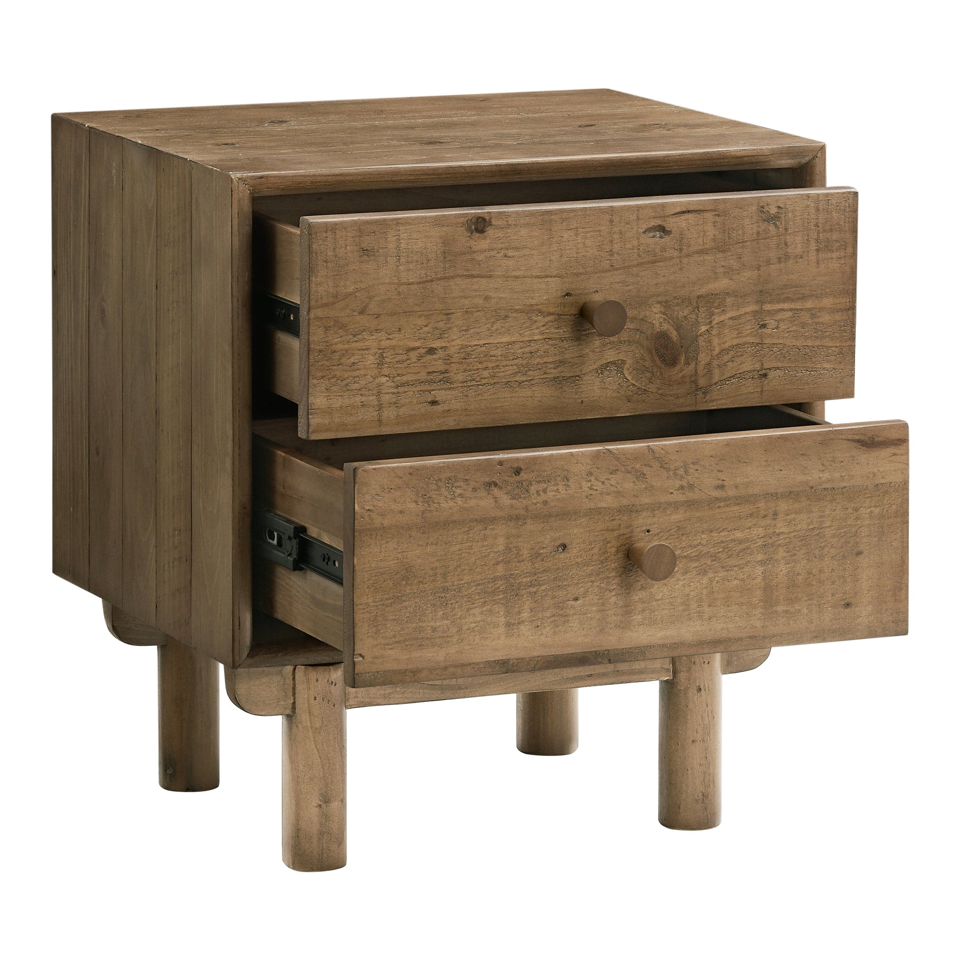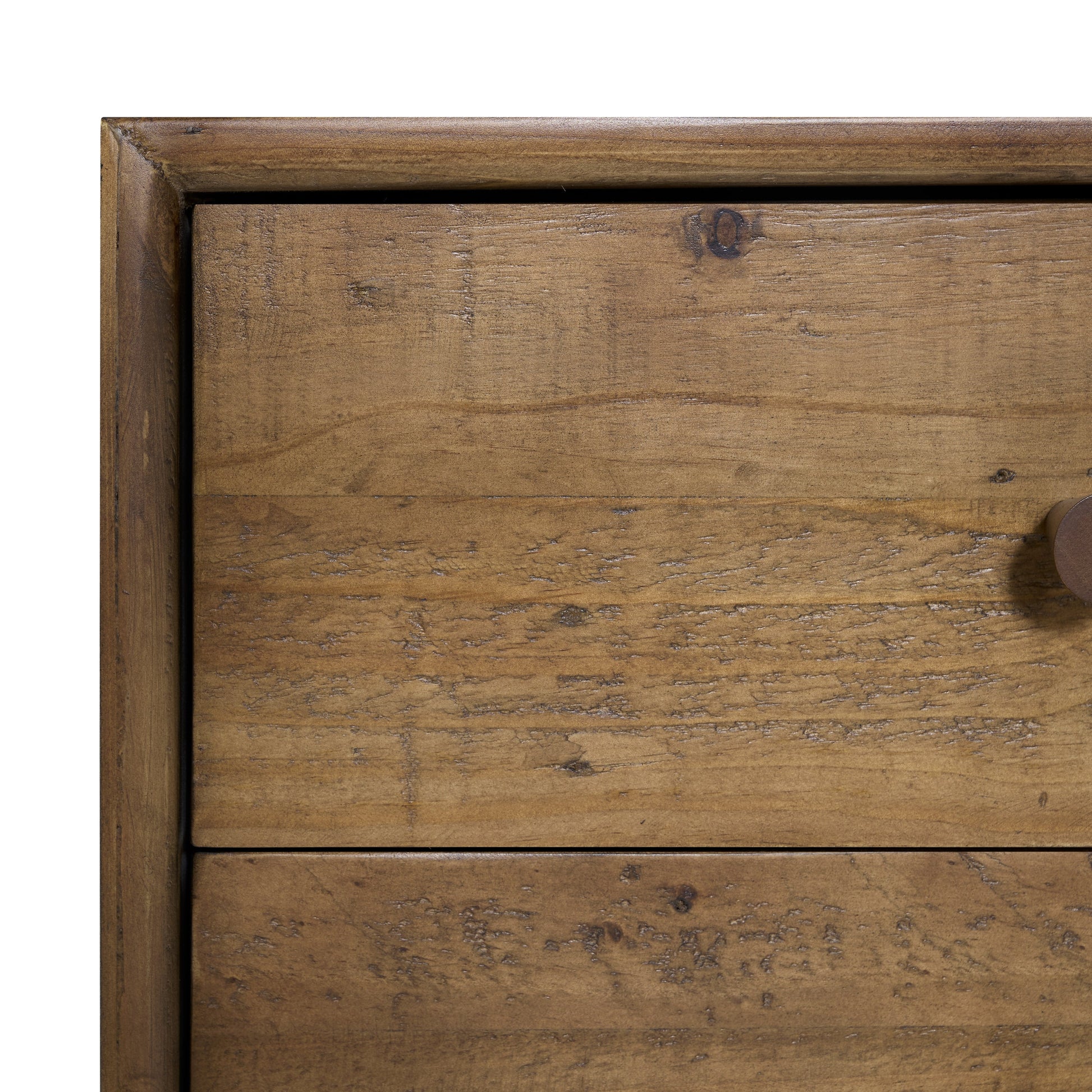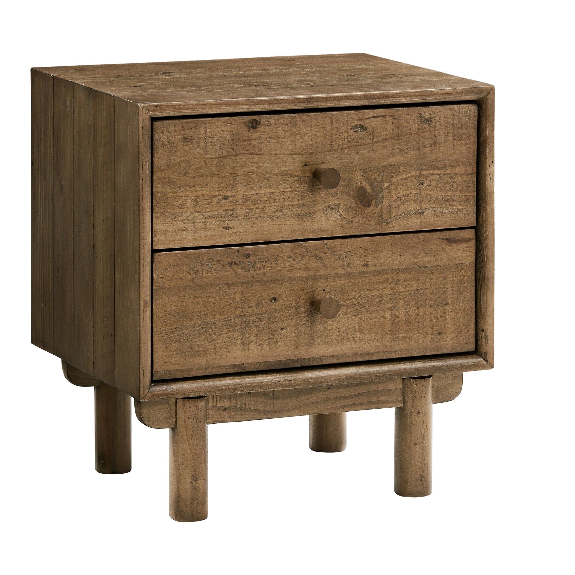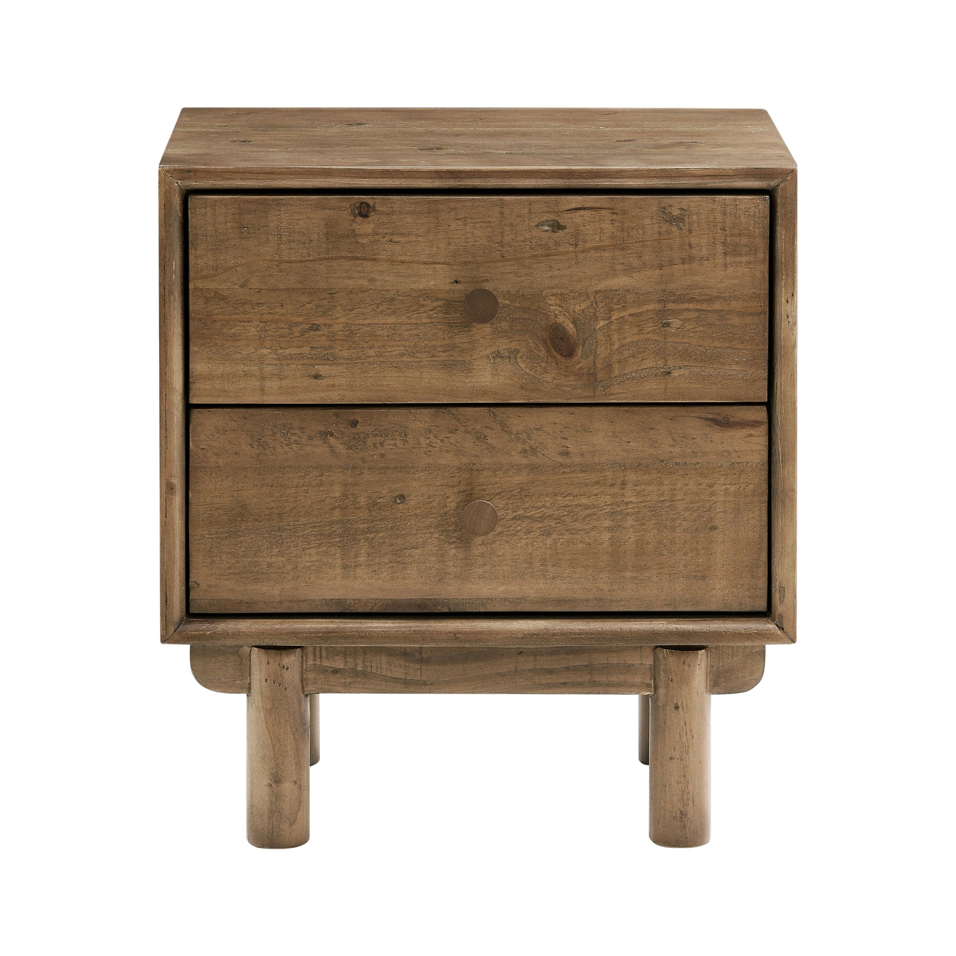 Apportez chaleur et fonctionnalité à votre chambre avec la table de chevet Washington à deux tiroirs. Fabriquée en bois recyclé, chaque pièce révèle des veinures uniques et des nœuds naturels qui témoignent de l'histoire du matériau. Deux tiroirs spacieux offrent un grand espace de rangement pour vos essentiels de nuit, tandis que son format compact lui permet de se glisser facilement à côté de votre lit. Ses pieds cylindriques robustes lui confèrent une touche de modernité, alliant charme rustique et style contemporain.