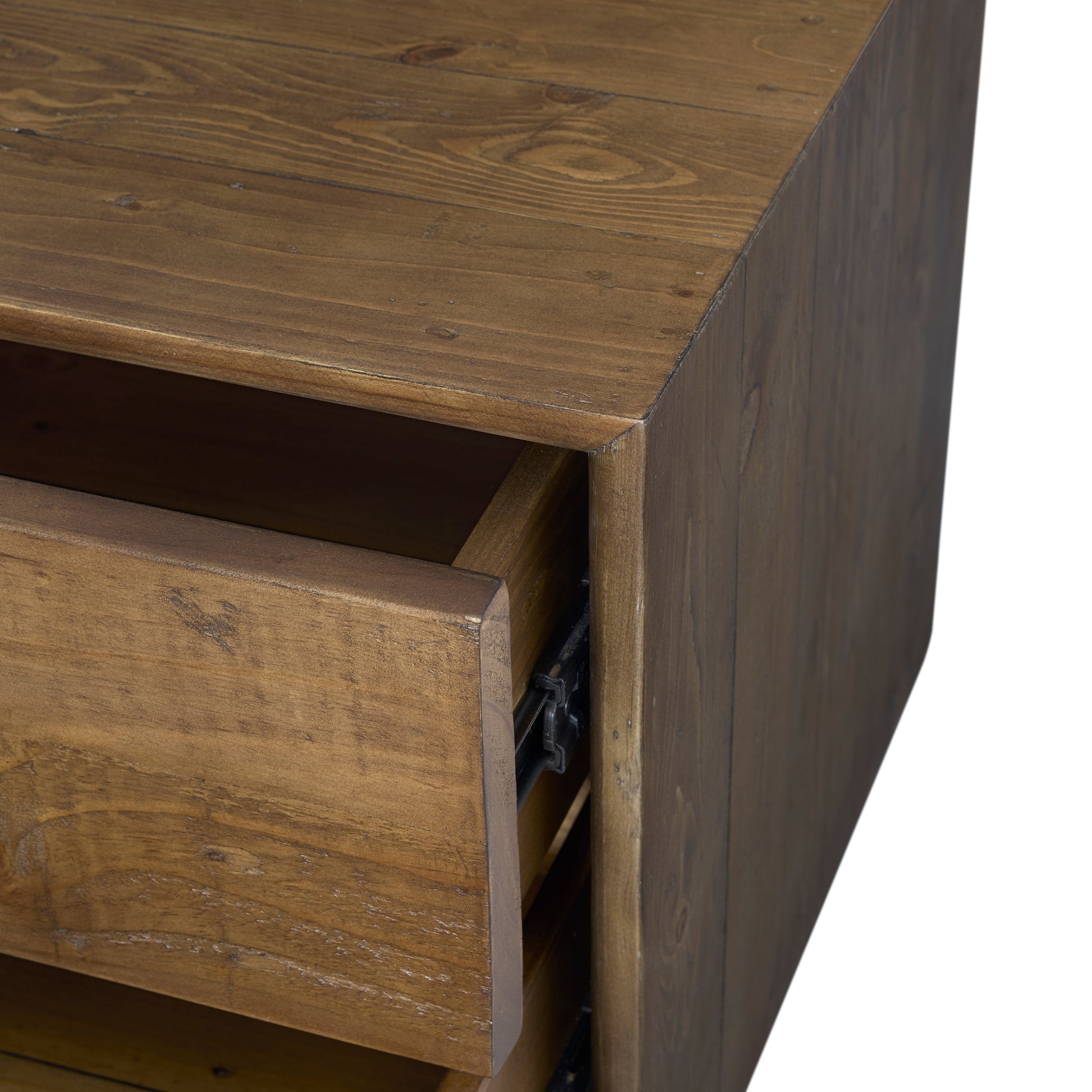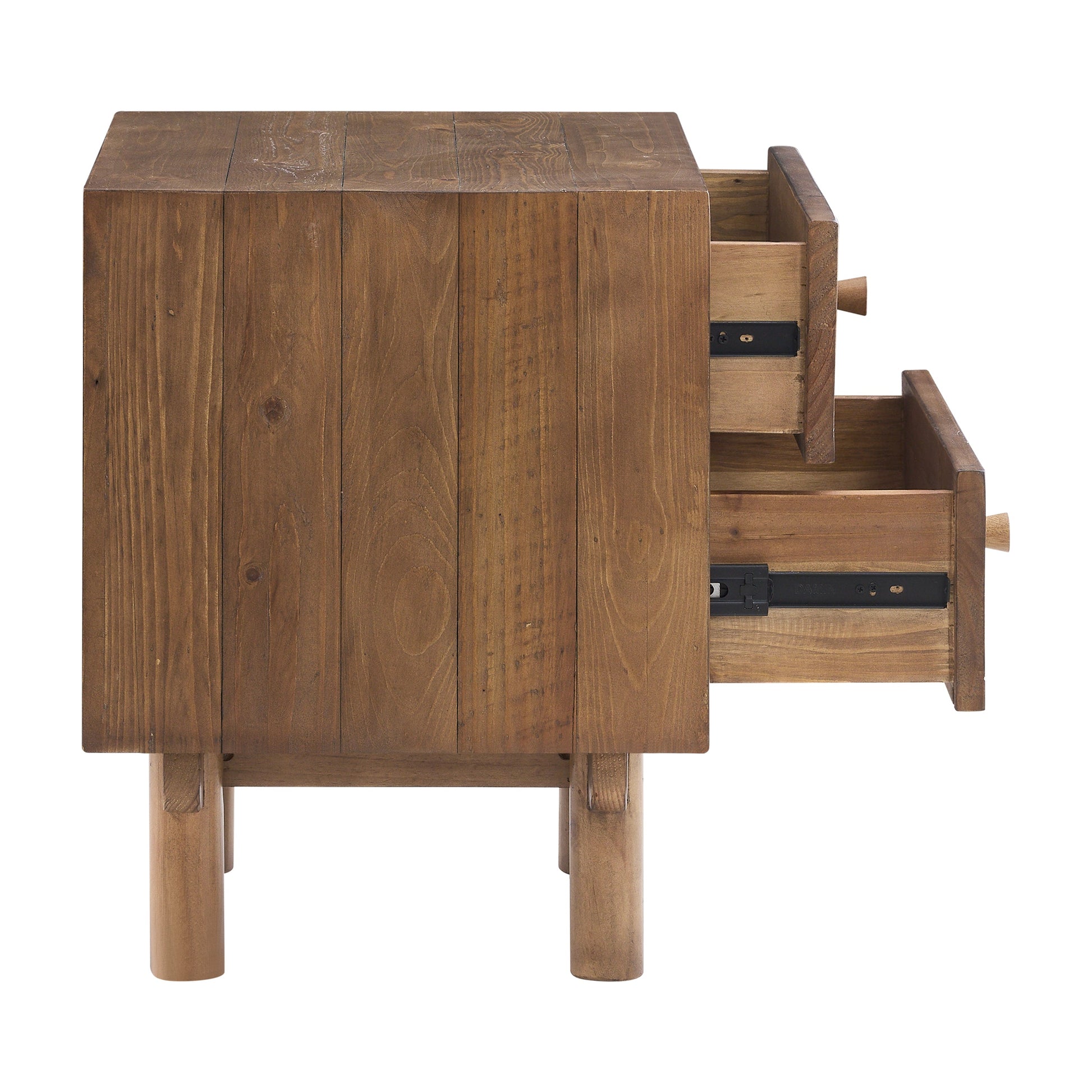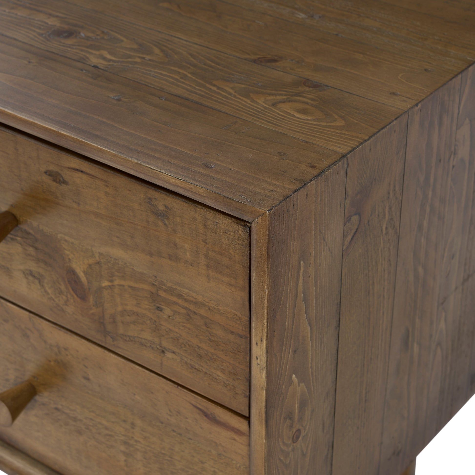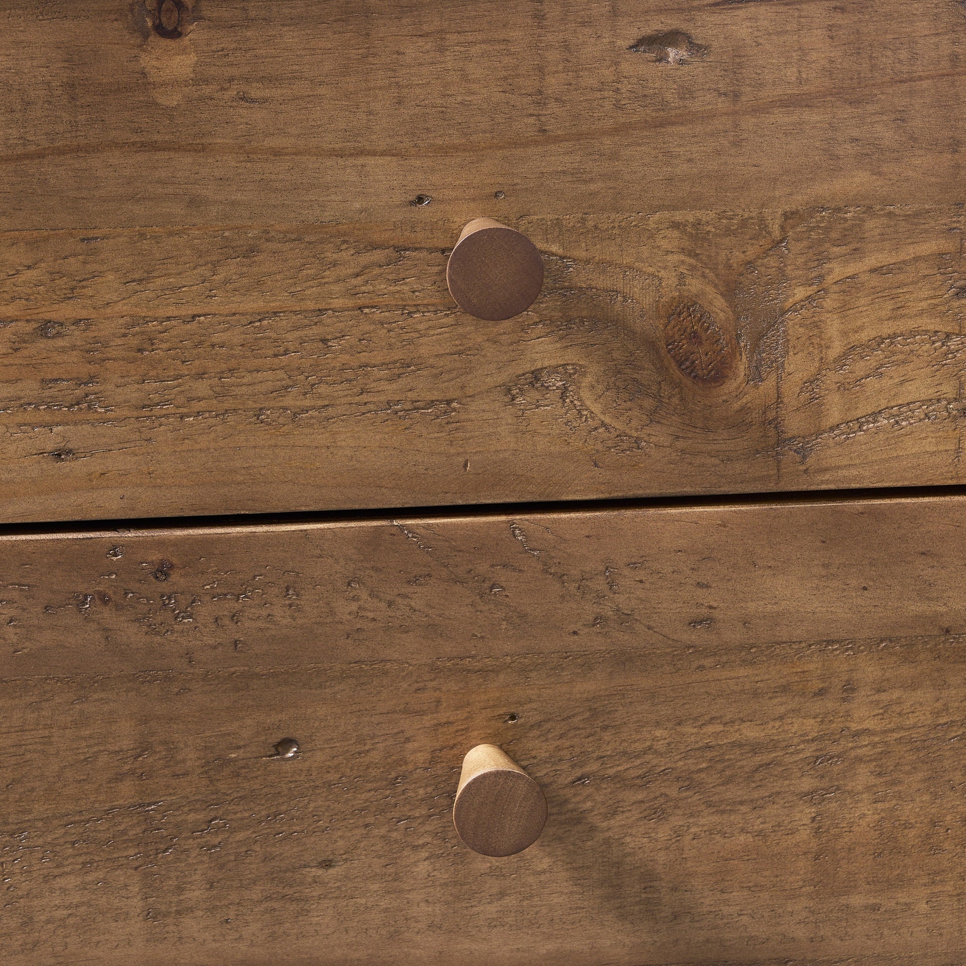 Apportez chaleur et fonctionnalité à votre chambre avec la table de chevet Washington à deux tiroirs. Fabriquée en bois recyclé, chaque pièce révèle des veinures uniques et des nœuds naturels qui témoignent de l'histoire du matériau. Deux tiroirs spacieux offrent un grand espace de rangement pour vos essentiels de nuit, tandis que son format compact lui permet de se glisser facilement à côté de votre lit. Ses pieds cylindriques robustes lui confèrent une touche de modernité, alliant charme rustique et style contemporain.