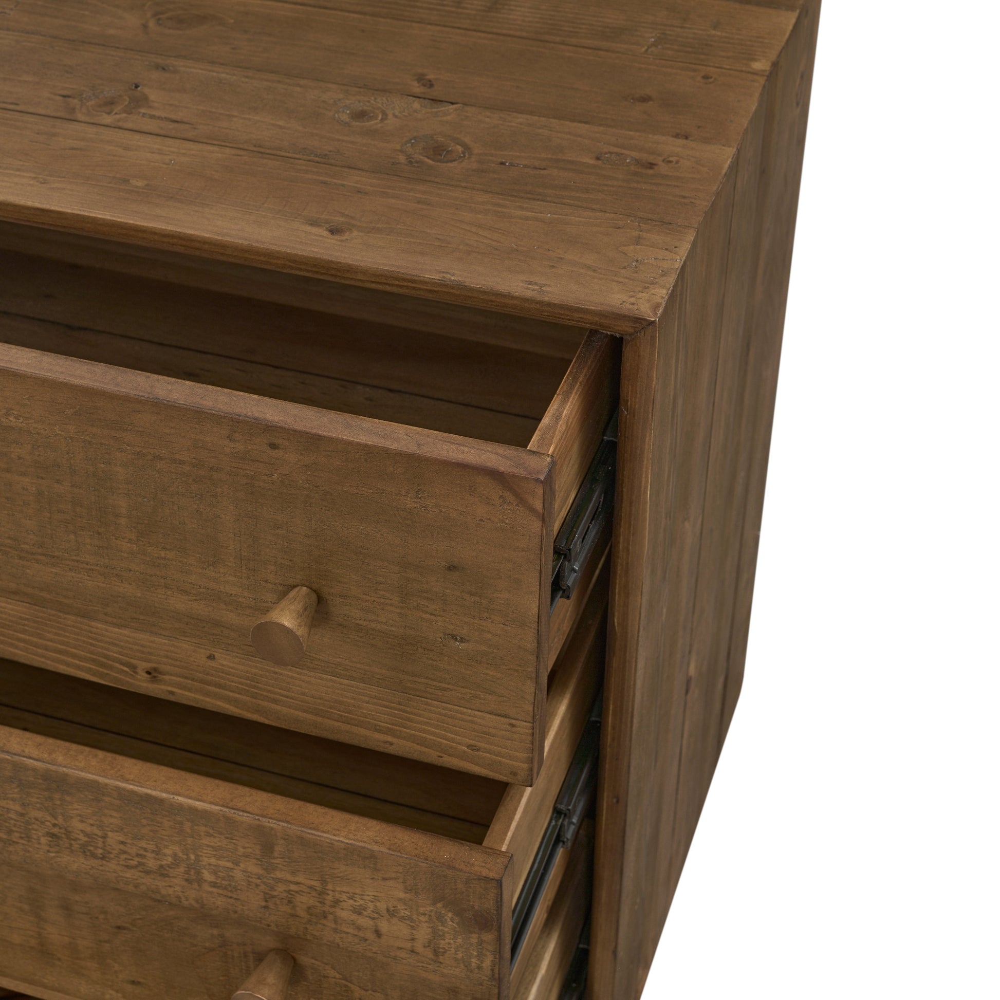 La commode Washington à six tiroirs offre un espace de rangement maximal et un style intemporel. Sa fabrication en bois recyclé confère à chaque pièce un caractère unique, tandis que sa large surface peut également servir d'espace d'exposition pour des lampes, des photos ou des objets décoratifs. Ses six tiroirs spacieux permettent de ranger vos vêtements et accessoires avec soin, faisant de cette commode un meuble aussi pratique qu'esthétique. Ses bords arrondis et ses pieds cylindriques apportent une touche contemporaine à son charme rustique.